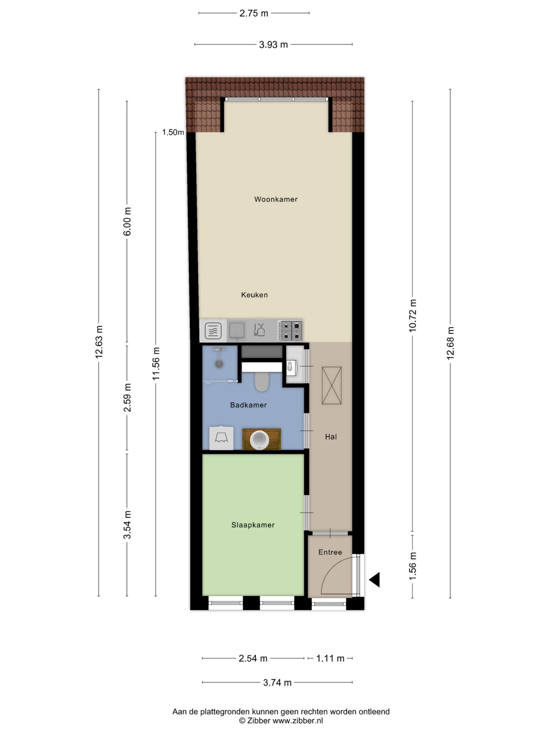 Entree met vloerbedekking en stucwerk wandafwerking. Gang met laminaatvloer, stucwerk wandafwerking en flinke kast met hierin de meterkast en de HR CV-combiketel (Remeha 2011, eigendom). Luik met schaartrap naar het dakterras. Lichte woonkamer met laminaatvloer, stucwerk wandafwerking en dakkapel met flinke raampartijen. Moderne keuken in rechte opstelling welke voorzien is van vaatwasser, koelkast, combi oven/magnetron, gaskookplaat, rvs-afzuigkap en opbergkastjes en lades. Slaapkamer aan de voorzijde met laminaat vloer en stucwerk wandafwerking. Volledig betegelde badkamer met hangcloset, douche, wastafel met meubel en de aansluiting voor de wasmachine bevindt zich in de badkamer.