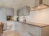 Op de begane grond komt u binnen in de hal met toilet (gedeeltelijk betegeld met wandcloset en fontein) en meterkast (uitgebreid en met glasvezelaansluiting). Vervolgens loopt u door naar de tuingerichte woonkamer met dankzij extra zijraam veel lichtinval en met zitgedeelte voor met fraai uitzicht over de voortuin. Tevens bevindt zich in de woonkamer een (trap)kast met regelunit voor de vloerverwarming. De aan de achterzijde gelegen moderne keuken is voorzien van diverse inbouwapparatuur (koel- vriescombinatie, vaatwasser, inductie kookplaat, afzuigkap en combi oven/magnetron).