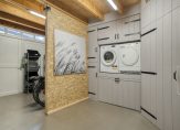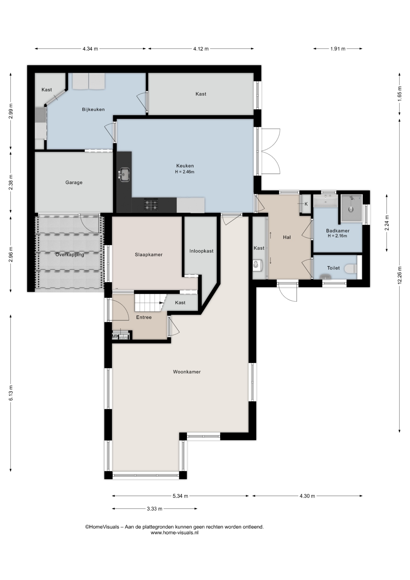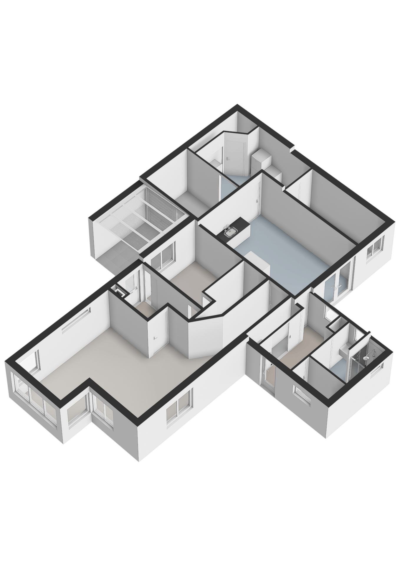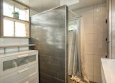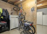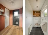 Aansluitend vind je een bijkeuken/berging met doorgang naar de hobbykamer. De aanbouw biedt een extra zij-entree met kastruimte, een badkamer met douche en wastafel, en een separaat toilet.