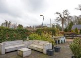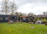 De fraai aangelegde tuin is voorzien van een houten berging/garage (21m2) en een unit.