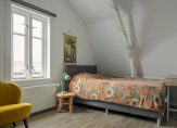 Overloop met vaste kast, 2 ruime slaapkamers voorzien van isolatieglas en karakteristieke balken.