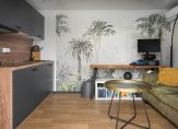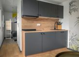De unit is voorzien van badkamer met toilet, slaapkamer en living. Deze ruimte kan verwarmd worden middels een airco. De unit heeft geen vergunning voor bewoning, voor eventuele mantelzorg (waar de unit zeer geschikt voor is) dient u toestemming bij de gemeente te vragen. De ruimte leent zich echter ook zeer goed als praktijkruimte voor knippen aan huis of iets dergelijks.