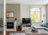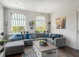 De fijne woonkamer is aan de voorzijde van het appartement gelegen en beschikt door de grote hoeveelheid raampartijen met een leuk uitzicht over veel natuurlijk licht.