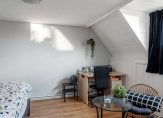 De tweede slaapkamer beschikt eveneens nog over een vliering, welke gebruik kan worden voor het stallen van bijvoorbeeld de koffers en kerstspullen.