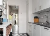 De nette keukenopstelling is aan de achterzijde van het appartement gelegen en beschikt over een 5-pits kookplaat, koelkast, vriezer, vaatwasser en combi-oven.
