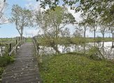 Via een loopbrug betreedt u het eiland. Direct bij het oversteken ervaart u de rust en begint het genieten. Een pad door de groene omgeving leidt u in een paar minuten naar de recreatiewoning.