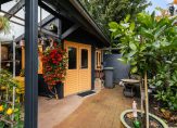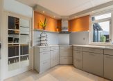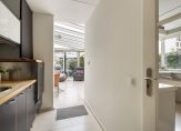 Entree via de voortuin met parkeergelegenheid. Hal met meterkast, toilet en trapopgang. Woonkamer van circa 40 m2 met semi open keuken aan de achterzijde van de woning voorzien van diverse inbouwapparatuur zoals een Quooker, inductie kookplaat, afzuigkap, oven, koelkast en handige apothekerskast. Via de schuifpui in de woonkamer toegang tot de achtertuin en vanuit de keuken een doorloop naar de bijkeuken met pantry en loopdeur naar de inpandige garage die uiteraard ook van buiten bereikbaar is. Gezellige tuinkamer in de serre met zicht op en toegang tot de ruime zonnige achtertuin met vrijstaande houten berging en gezellige grote overkapping.