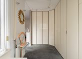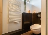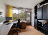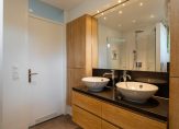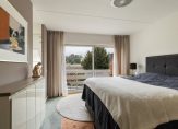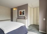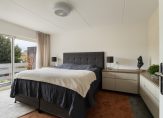 Overloop. Aan de voorzijde de 1e slaapkamer met Frans balkon en de ruime badkamer met inloopdouche, Japans toilet, dubbele wastafel in bad-meubel en handdoekradiator. Aan de achterzijde de 2e slaapkamer met kastenkamer en balkon. Boven de garage de 3e slaapkamer met separate wasruimte. Vaste trap naar de 2e verdieping. Bergzolder.