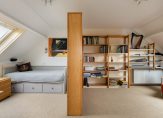 Voorzolder met diverse bergruimte en de opstelplaats van de c.v. ketel. Tevens aansluitpunten voor wasmachine/droger. 4e slaapkamer met eveneens diverse bergruimte en twee dakvenster. Bergzolder.