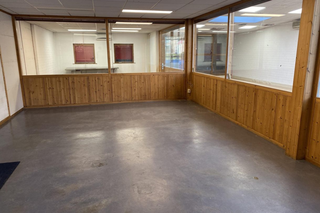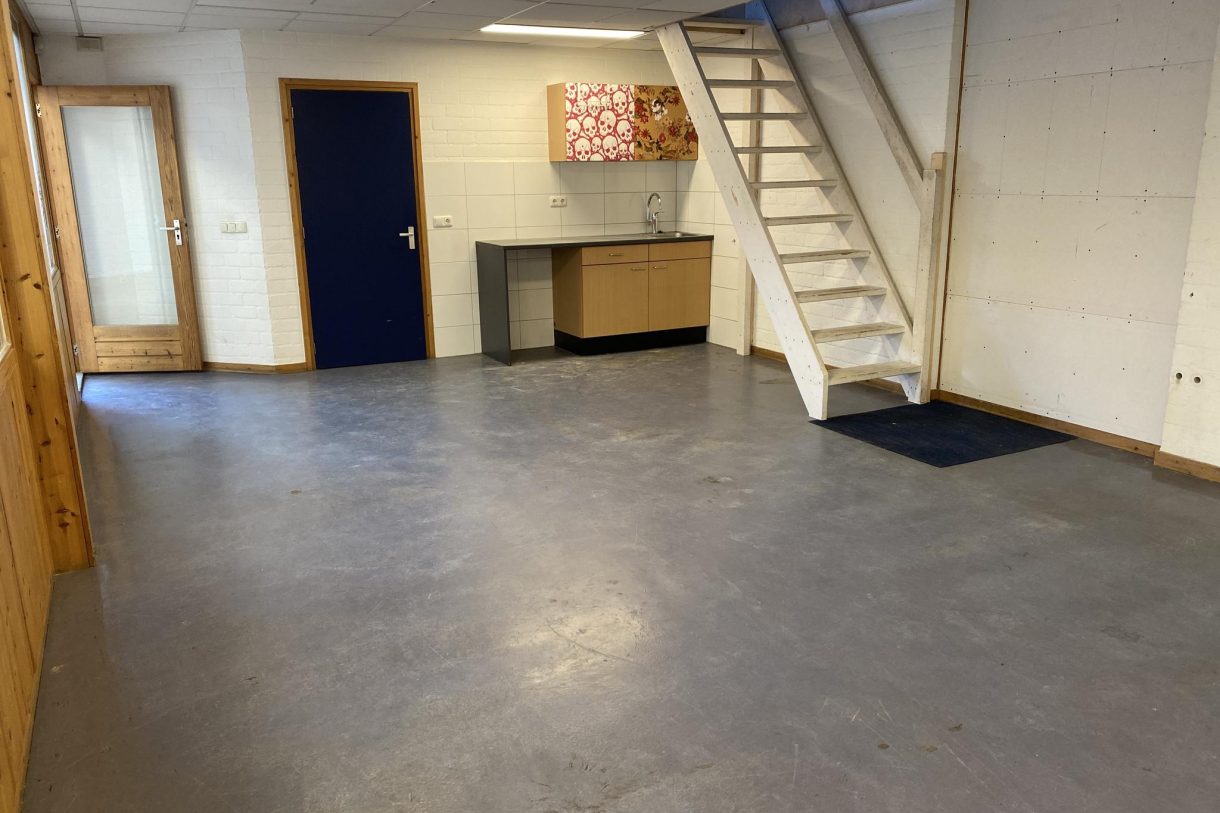 De totale oppervlakte beslaat circa 180 m² verdeeld over de begane grond en verdieping. De begane grond is voorzien van 2 ruime werkruimtes, kantine met pantry en een toilettengroep. Op de verdieping is een grote open ruimte geschikt als opslag of kantoor.