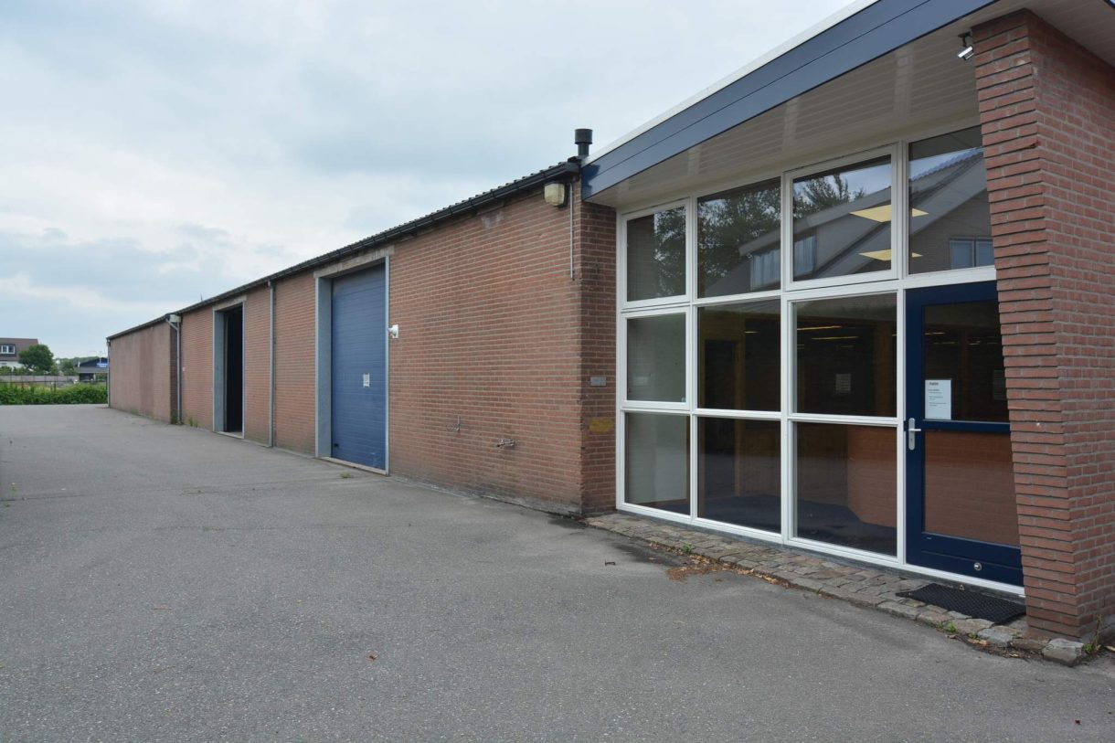 Dit bedrijfspand is gelegen aan de rand van het bedrijventerrein nabij de Van Heemstraweg in Beneden-Leeuwen.