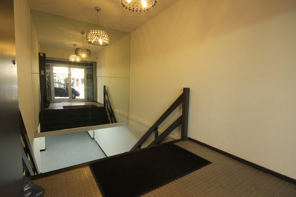 De winkelruimte is gelegen in het souterrain en goed bereikbaar middels een circa 3 meter brede pui aan de Burgemeester Mooijstraat en 2,60 meter brede trap.
