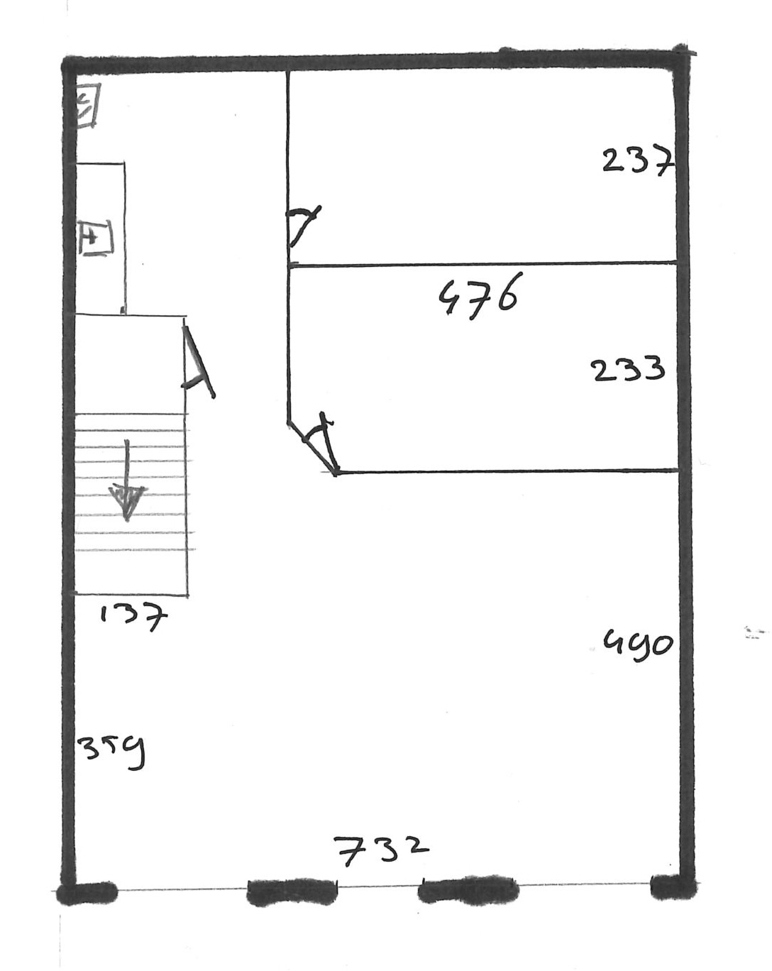 – Eenvoudige pantry op verdieping en sanitaire ruimte (toilet en douche) op begane grond