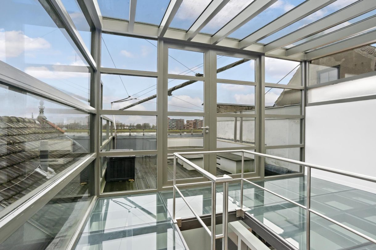 De gehele 2e etage is ingericht als loungeruimte ca. 8.08×4.35 met als eyecatcher een glazen vloer boven het atrium en glazen uitbouw met panoramisch uitzicht over het drie rivierenpunt, vanuit de lounge grote openslaande deuren spectaculair dakterras ca. 5.69×434 met vrij uitzicht. Tot slot op deze etage een stijlvolle badkamer met inloopdouche en toilet en een trap naar slaapkamer in de kapetage.