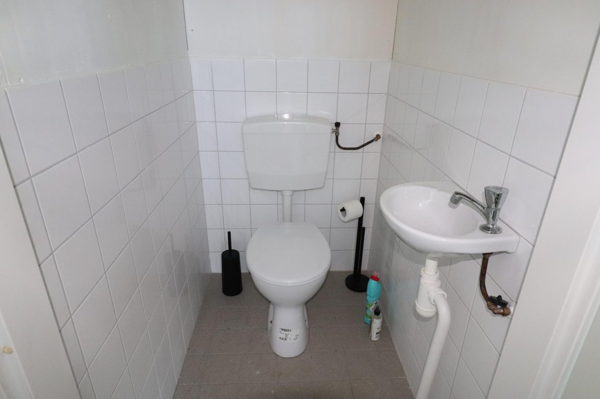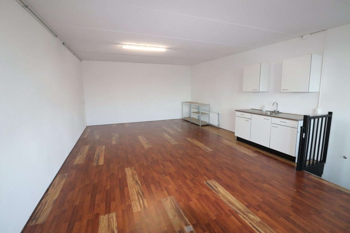 De bedrijfsruimte is toegankelijk via een loopdeur en een overheaddeur en is voorzien van een betonvloer met vloerverwarming. De ruimte heeft een hoogte van circa 3,30 meter en is geschikt voor uiteenlopende bedrijfsactiviteiten. Vanuit de hal zijn de toiletruimte en de meterkast bereikbaar, met aansluitingen voor water, elektriciteit en telefonie.