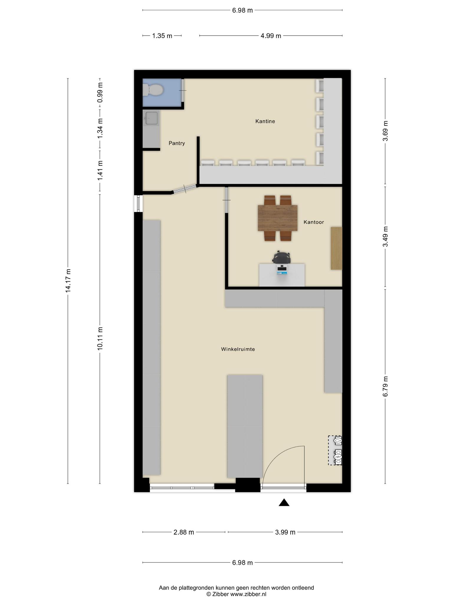 Het laatste gebruik is kantoorfunctie geweest. De ruimte bestaat uit een entree annex winkelruimte, een kantoorruimte, pantry en kantine annex magazijn. De voorzijde is volledig transparant met frontbrede glazen ramen.