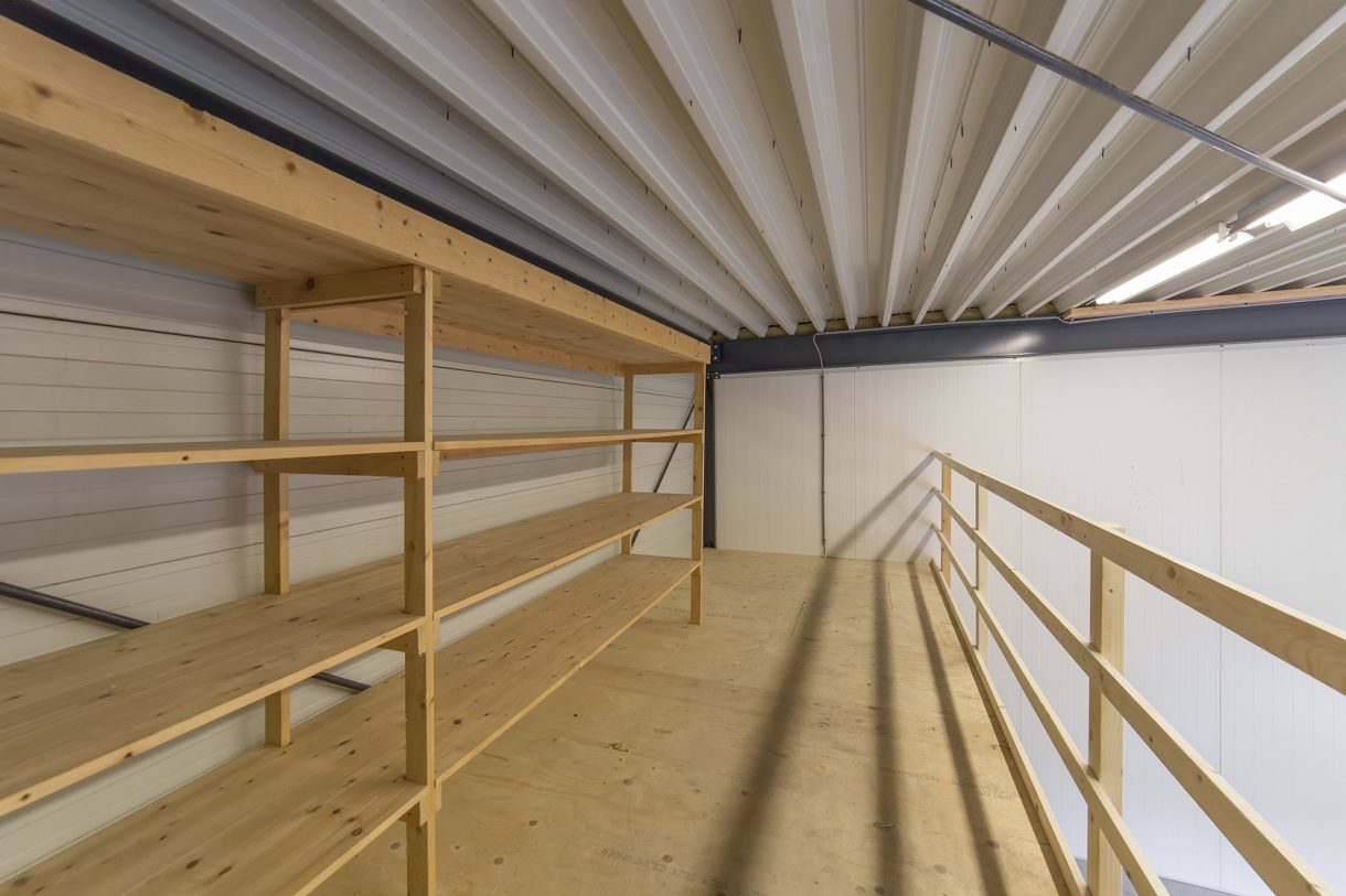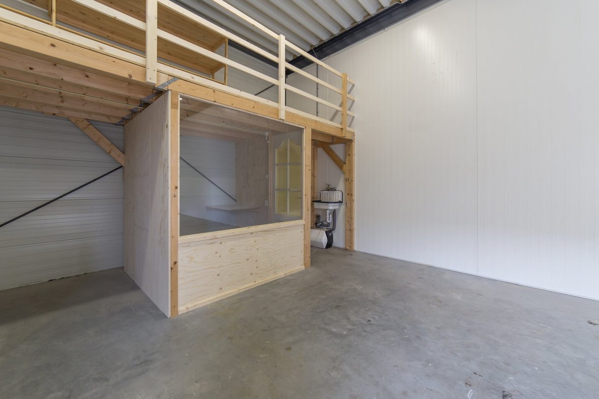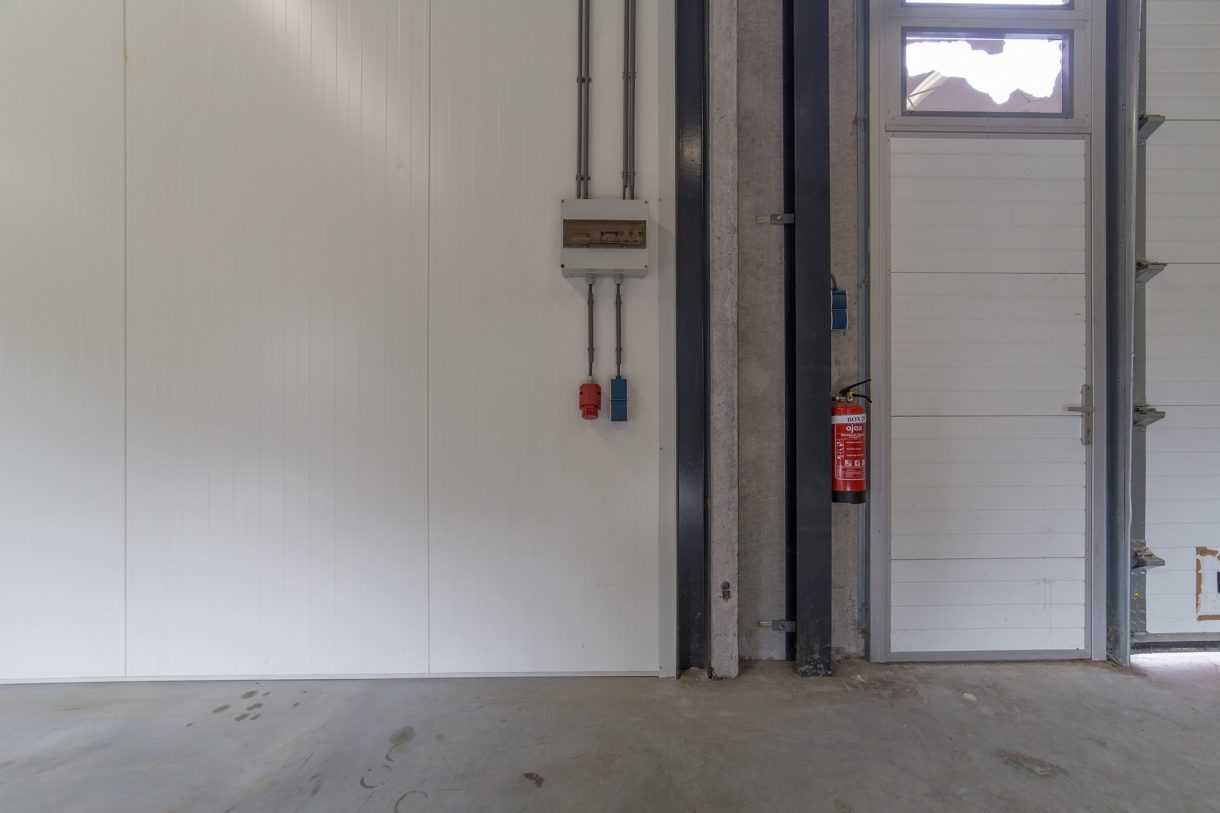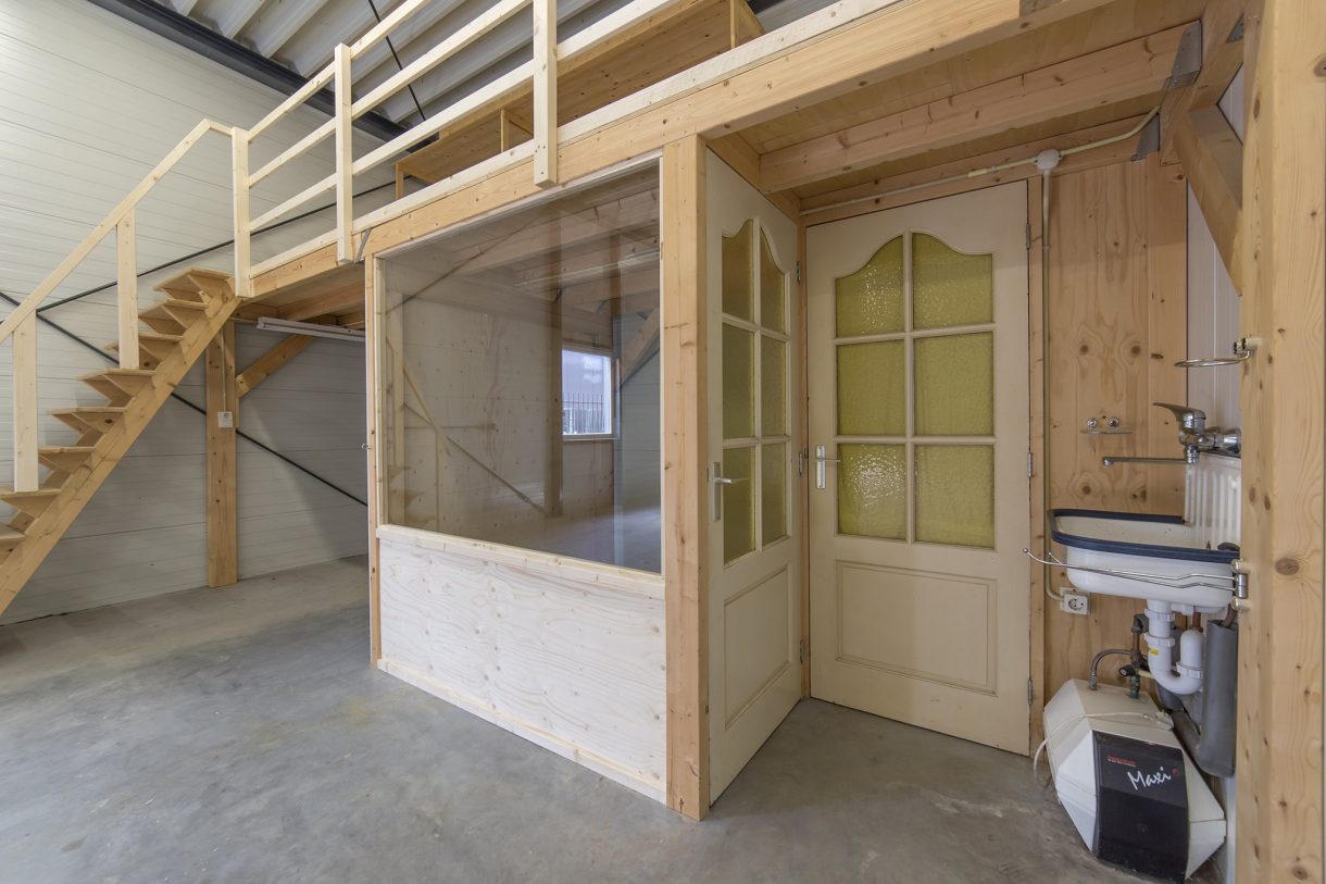 De bedrijfshal beschikt over ca. 87 m² bvo (afm. 16 m x 5,45 m (lxb)) en vrije hoogte van ca. 4 meter en is voorzien van een elektrische overheaddeur van ca. 3,0 m x 3,20 m (hxb) met separate loopdeur, eigen meterkast met tussen meter en beschikt over 2 groepen (220V; 16 amp) en 1 groep voor krachtstroom (380V ;16 amp) en eigen wateraansluiting. Daarnaast beschikt de hal over een eigen toiletgroep, spoelbak en eenvoudig kantoortje. Verlichting middels TL-verlichting. Door opdrachtgever is er extra bergruimte gecreëerd op de verdieping van ca. 10 m². Het plaatsen van een heater(s) is mogelijk.