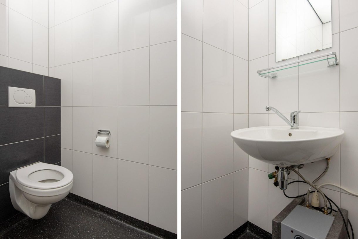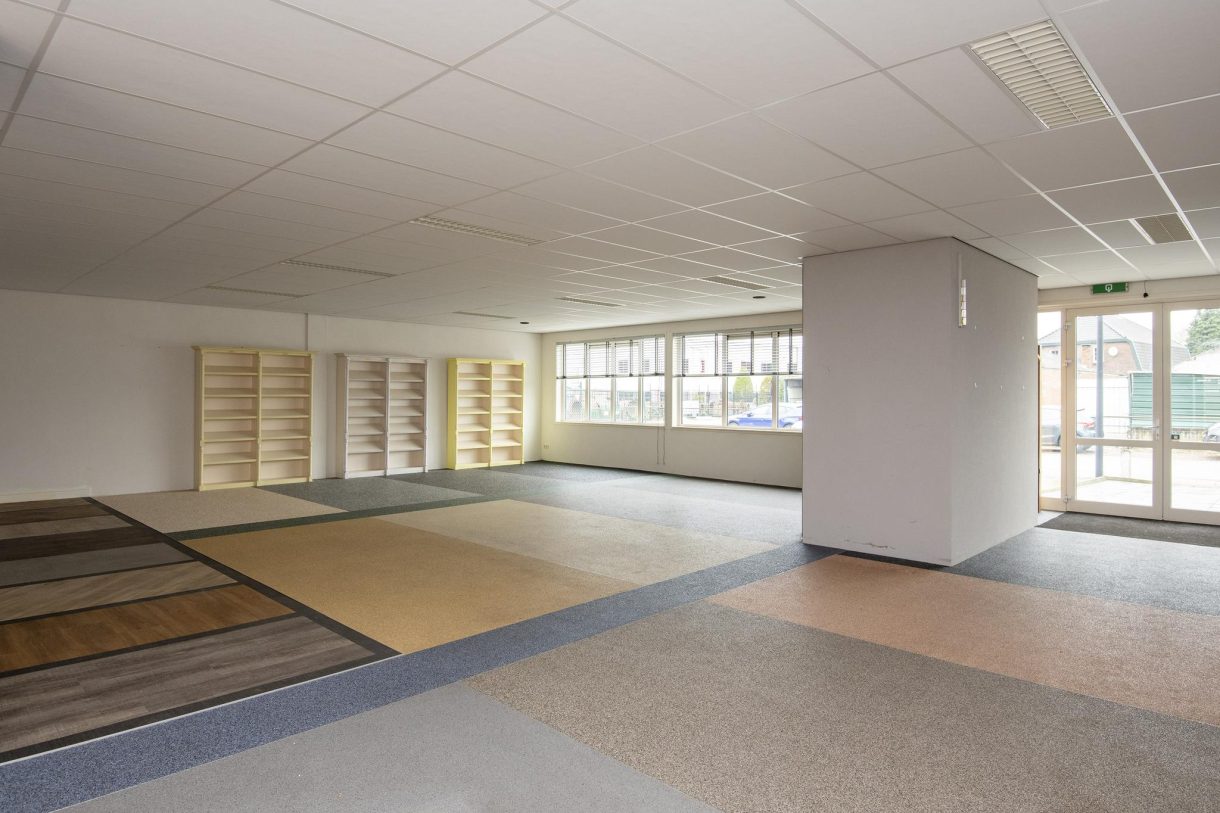 Het object beschikt op de begane grond aan de straatzijde over een fraaie kantoor- of showroom-ruimte met een oppervlakte van in totaal plm. 196 m2. Vanzelfsprekend zij er sanitaire ruimten en een pantry aanwezig. Op de verdieping hierboven is eveneens een kantoorruimte of showroom gelegen ter grootte van plm. 165 m2. Deze is via een ruimte trap vanaf de begane grond te bereiken. De kantoorruimten zijn voorzien van systeemplafonds en voldoende verlichting.
