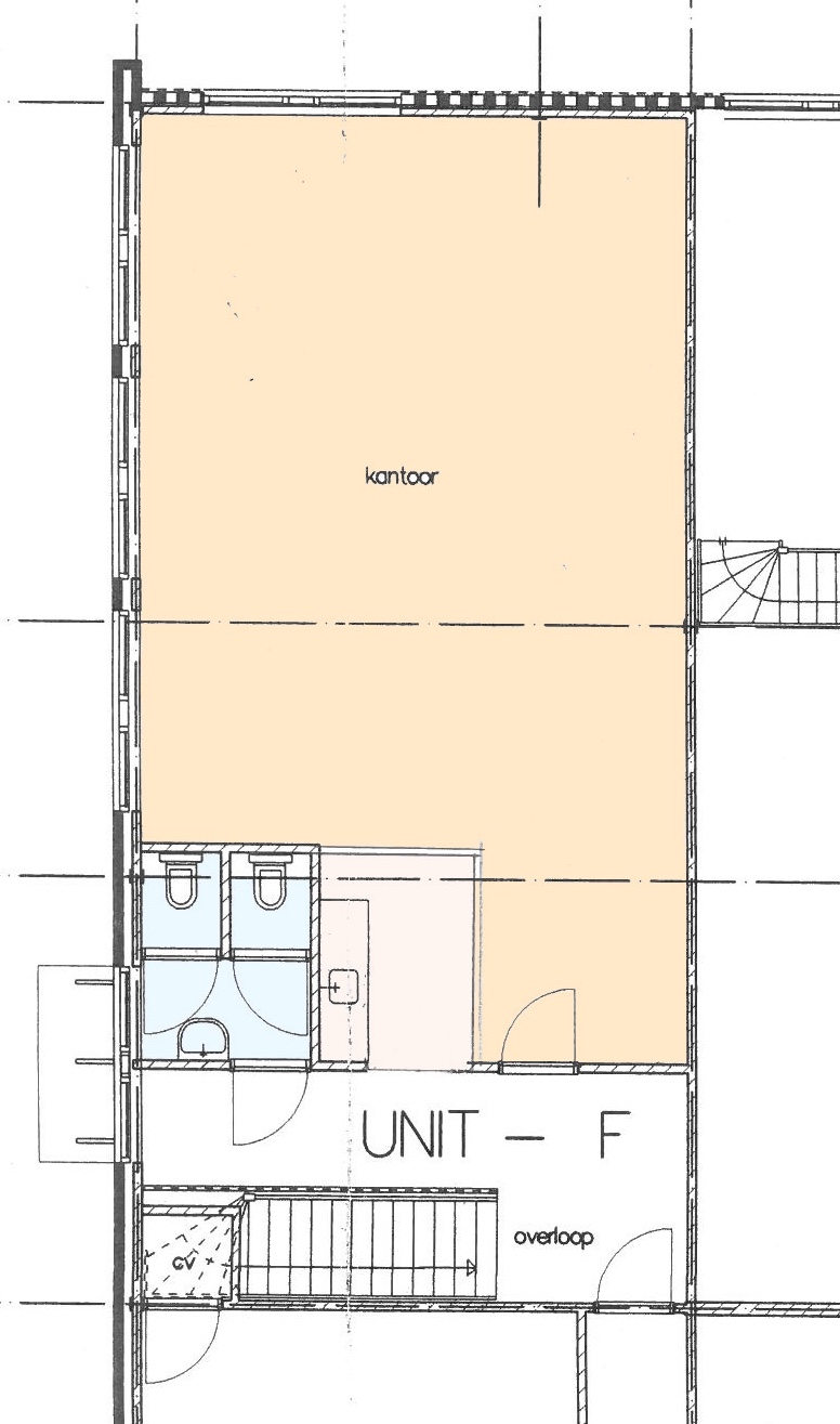 Indeling: Via de entree op de BG bereikt u via de trap de overloop met aan de linkerzijde de toegang tot de zeer representatieve kantoorruimte van netto 60 m2 met eigen pantry. De kantoorruimte is voorzien van een laminaatvloer, een systeemplafond met ingebouwde airco en aan 2 zijden ramen.