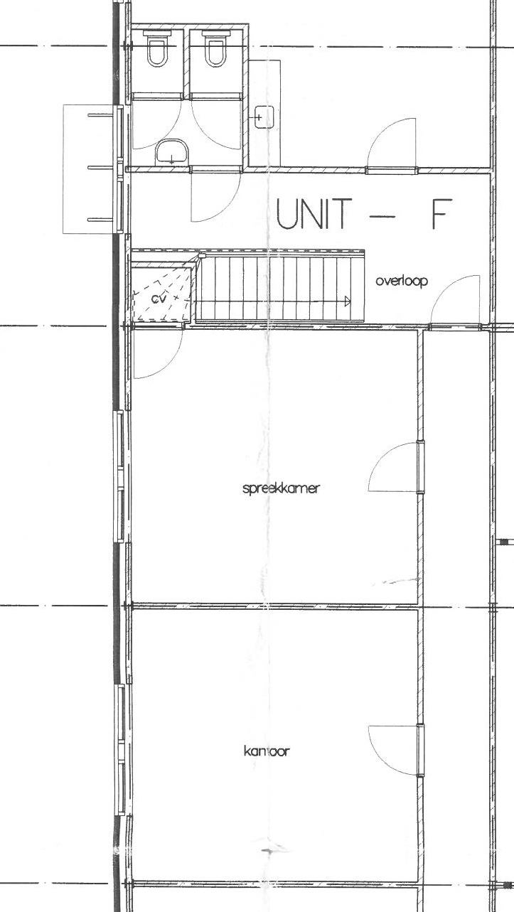 Indeling: Via de entree op de BG bereikt u via de trap de overloop met aan de rechterzijde de gang en toegang tot de representatieve kantoorruimte van netto 25 m2. De kantoorruimte is voorzien van vloerbedekking, airco, een systeemplafond en te openen ramen.