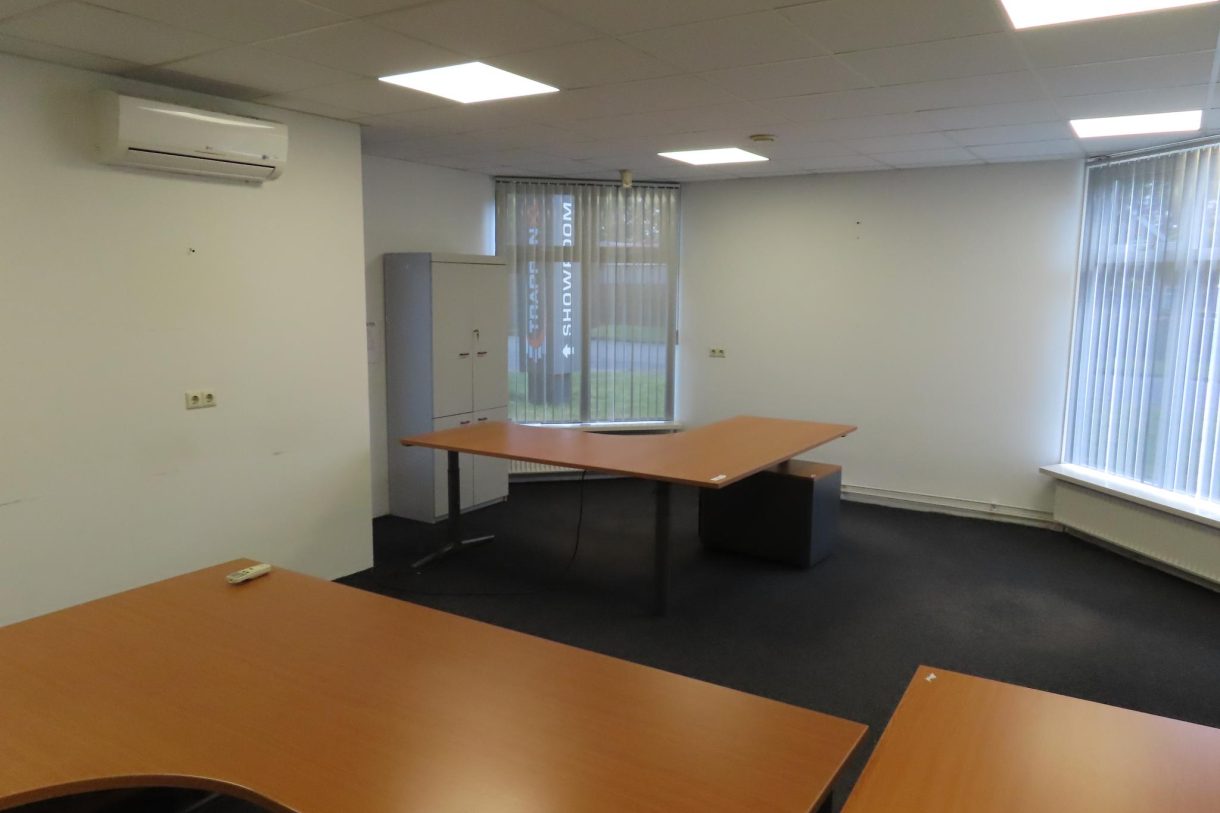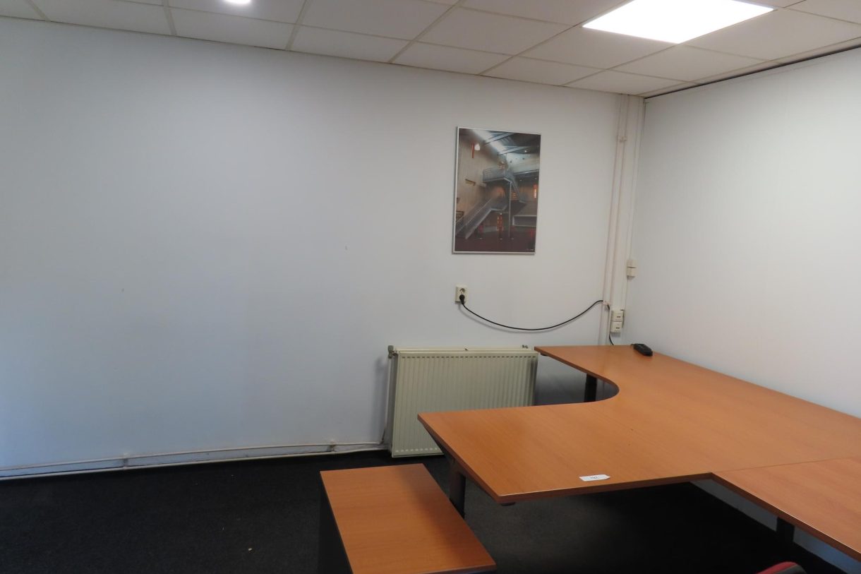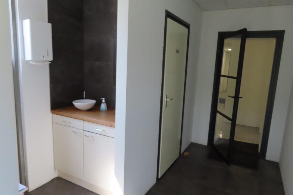 Te huur: een kantoorruimte van ca. 120 m², voldoende parkeerruimte om het pand.