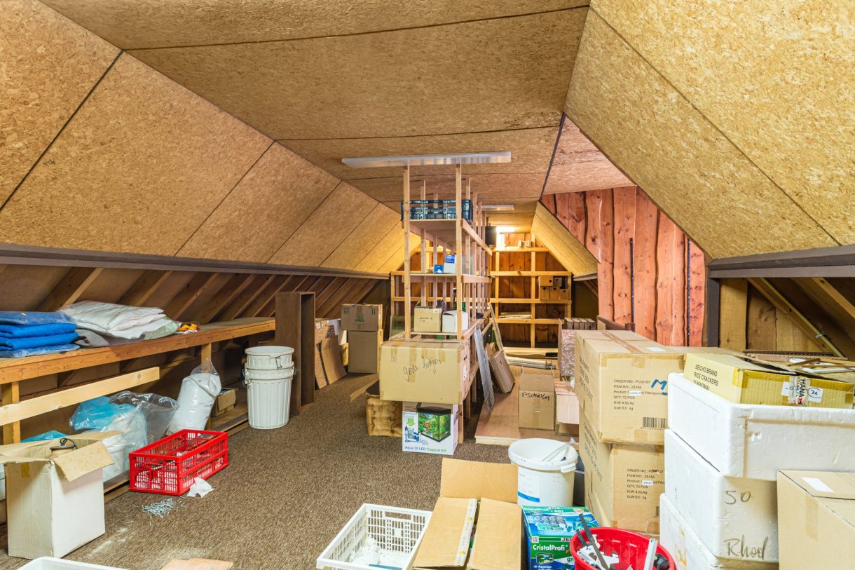 Aan de voorzijde van de winkel heeft vroeger altijd een eenvoudige bovenwoning met eigen opgang gezeten. Deze zou door een handige klusser weer in het leven geroepen kunnen worden.