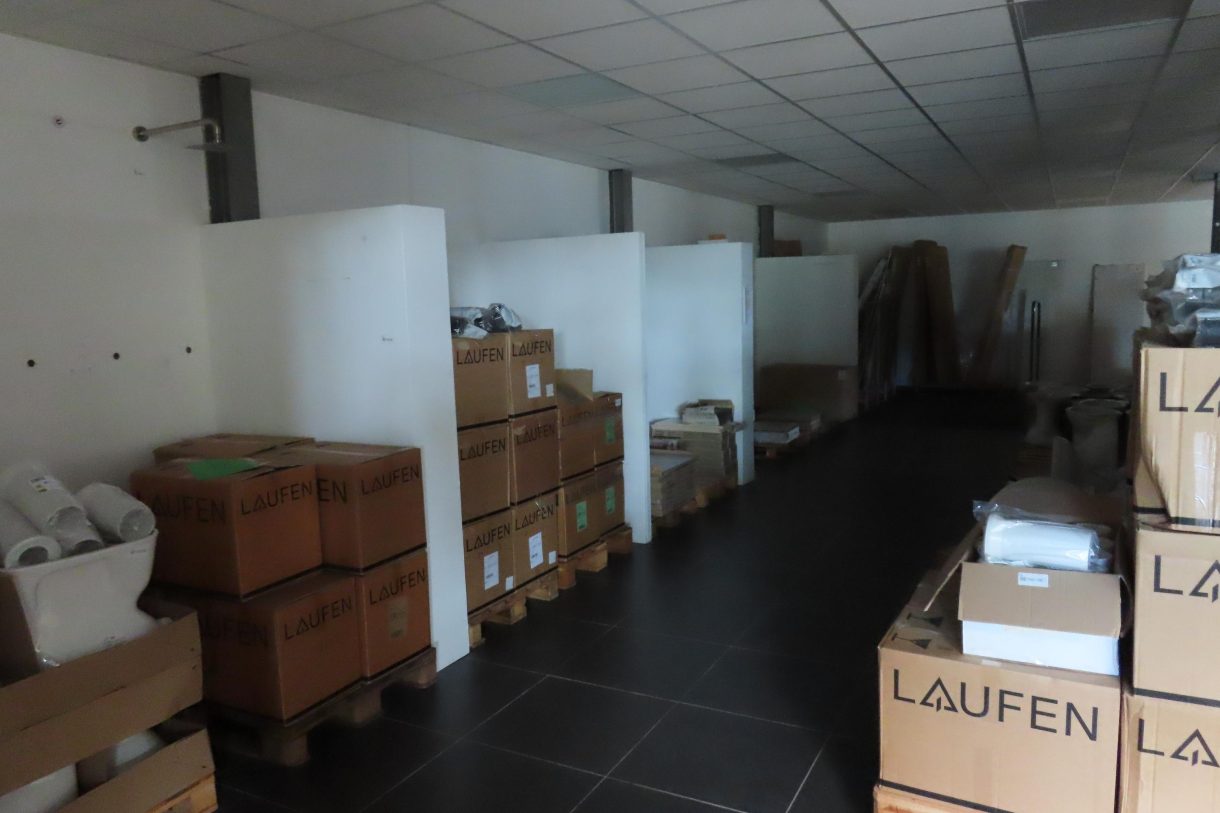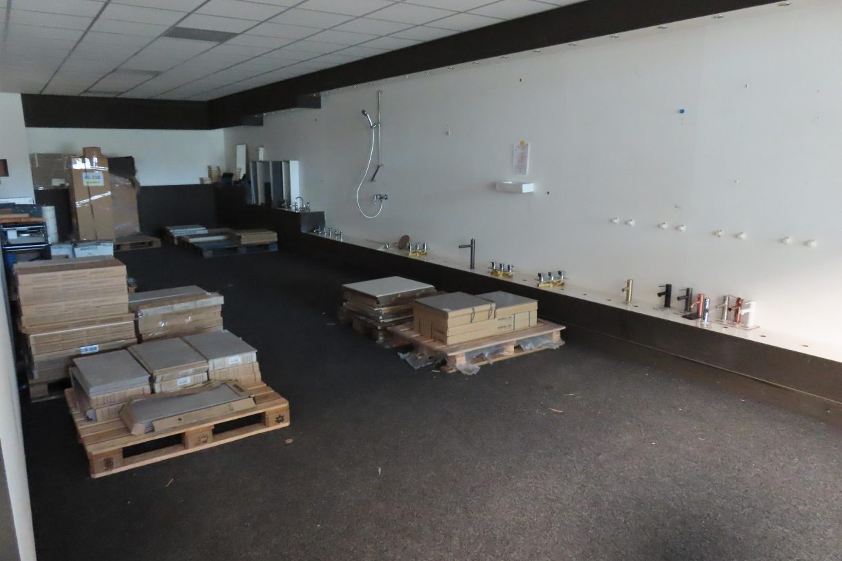 Het showroom/magazijn, kantoor en de sanitaire voorzieningen representatief.
