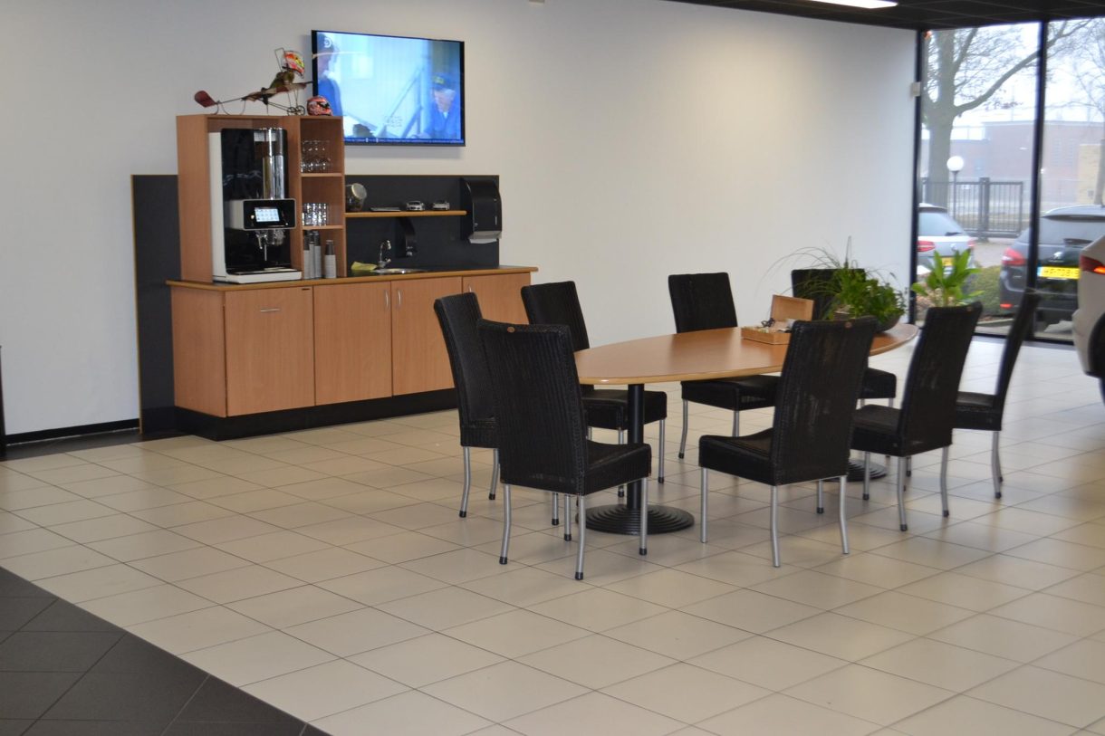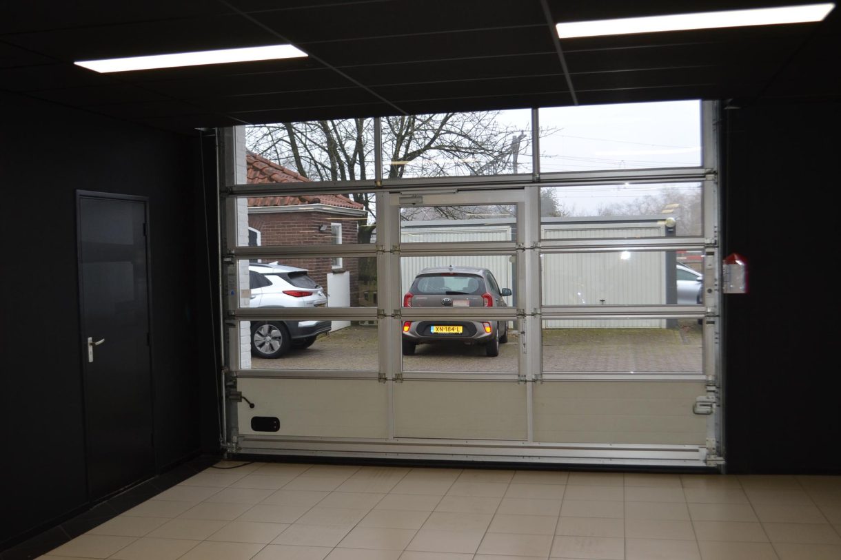 Indeling: een representatieve showroom voorzien van een tegelvloer, systeemplafond, balie/receptie en kantoorruimte. Vanuit de showroom is er een toegang tot de naastgelegen garage met voorzieningen en achtergelegen magazijnruimte. Naast de garage bevindt zich een spoelplaats. Het afsluitbaar buitenterrein is volledig bestraat, verlicht en omheind.