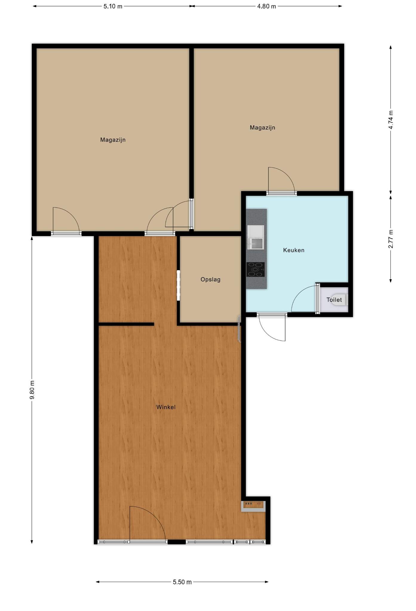 Magazijn heeft een aparte ingang en een toilet.