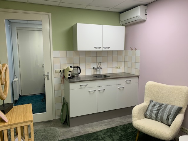 Inhoudsbeschrijving: kantoor-/praktijkruimte met pantry en kleine kantoorruimte.