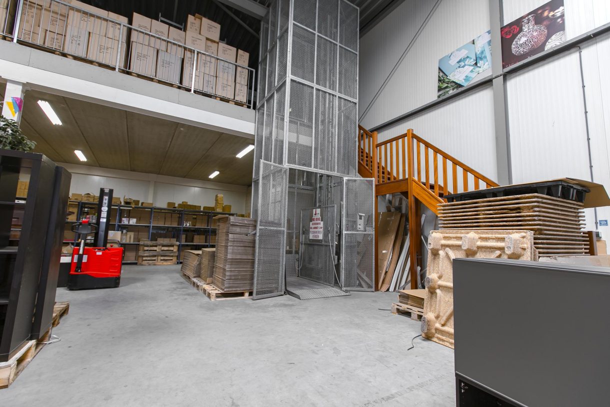 Een ruim bedrijfspand met een totale oppervlakte van circa 1.195 m², met een kantoorruimte van circa 72 m², toilet, pantry en royale een ontvangsthal. Deze kunnen voor zeer veel doeleinden gebruikt worden. De hoogte van de bedrijfsruimte is circa 8 meter. De eerste verdieping heeft een oppervlakte van circa 485 m². Er is een goederenlift voor pallets aanwezig.