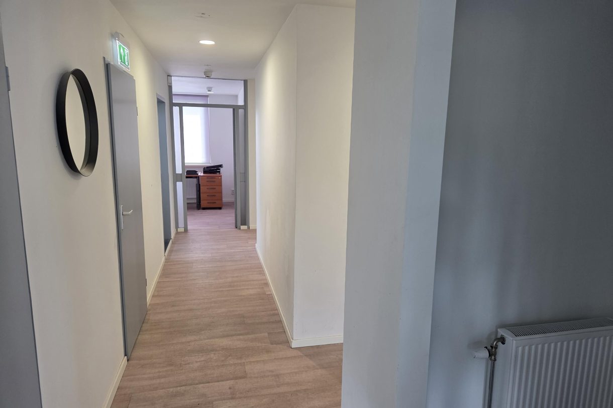 Het betreft een keurige kantoorruimte op de eerste verdieping van in totaal ca. 131,5 m². Het kantoor is onderverdeeld in een grote vergaderkamer en 4 aparte kantoorruimtes. Alle vloeren zijn voorzien van laminaat.