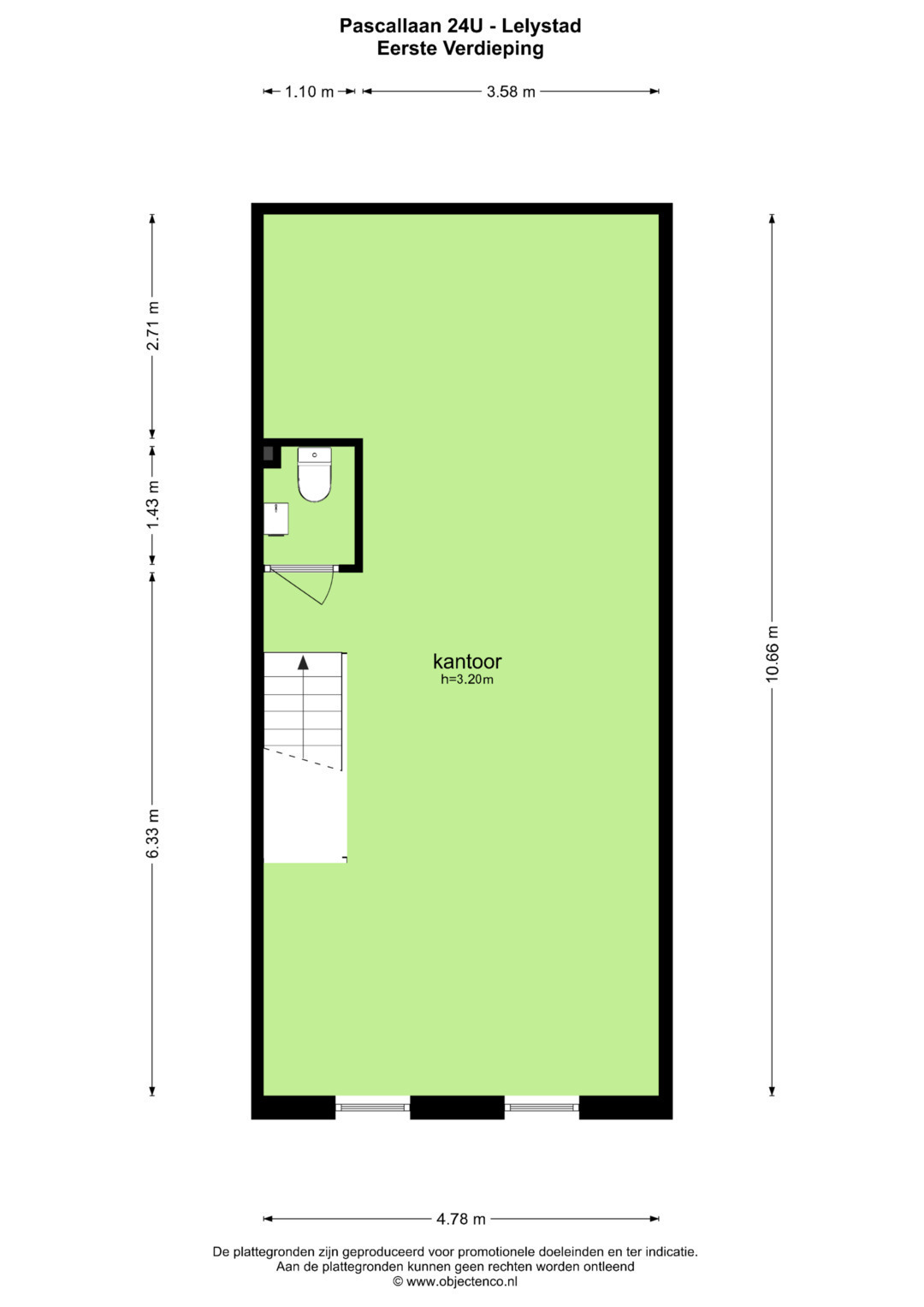Verdieping: ca. 50 m² VVO, nog in te richten als kantoorruimte