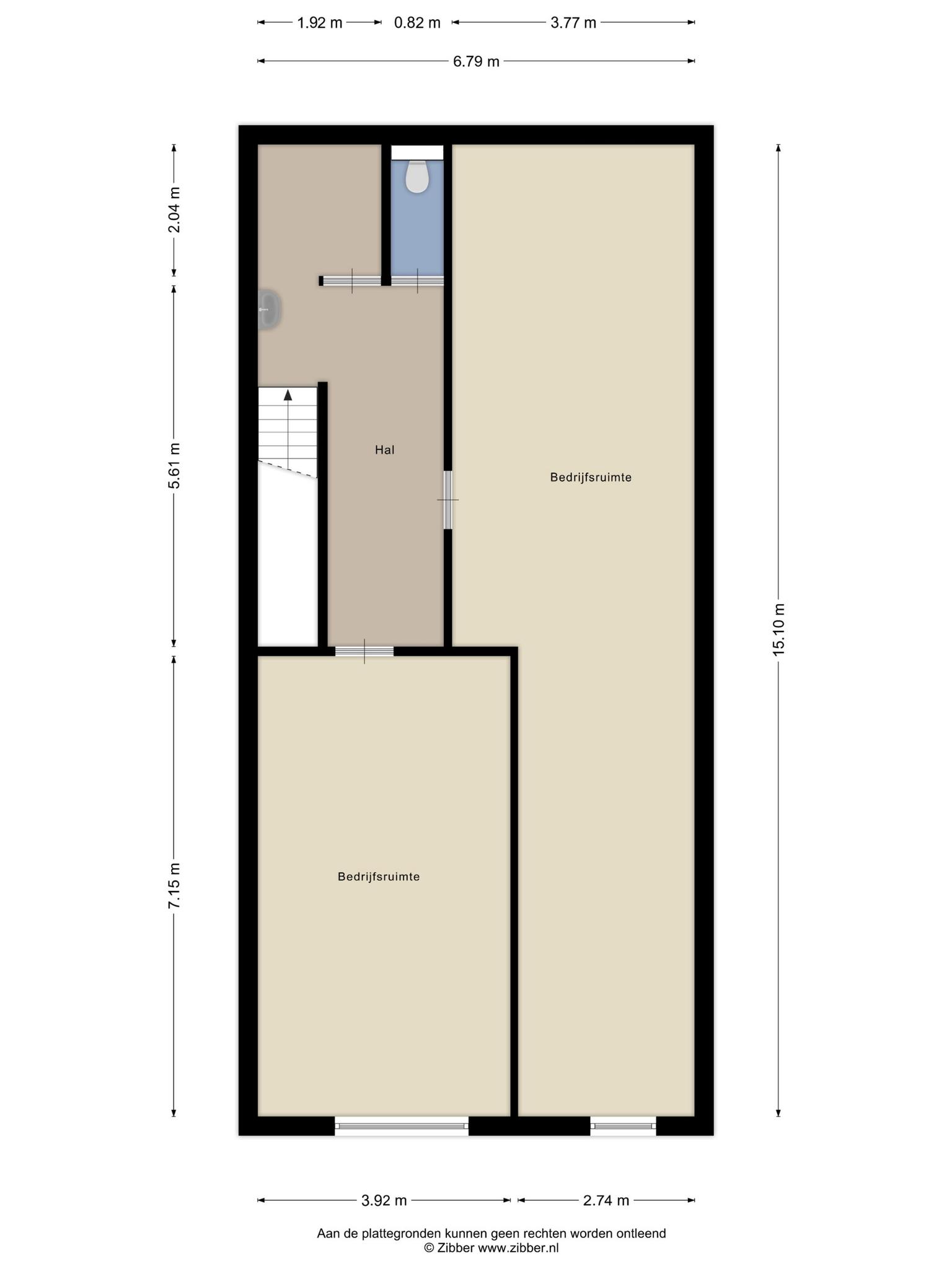 Op de begane grond is een ruime hal gevestigd, welke te bereiken is via de voordeur/gang en ook via de overhead deur. Er is tevens aparte ruimte met een toilet inclusief douche aanwezig.