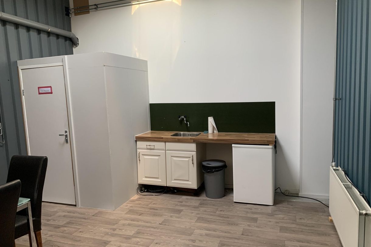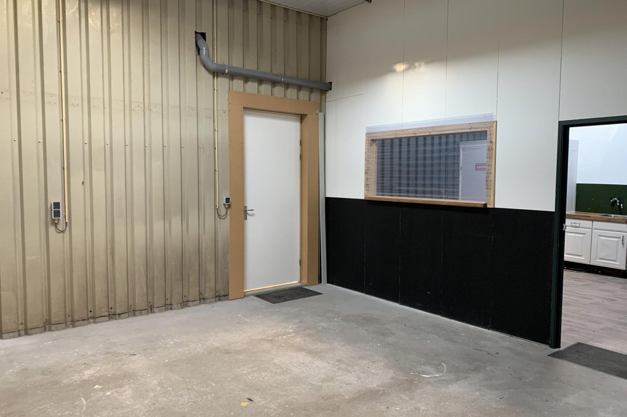 Entree/hal, pantry, toilet, c.v. ruimte, 2 kantoorruimten en een bedrijfsruimte (4.3 hoog). Totale oppervlakte 151 m2 met verwarming en een roldeur aan de voorzijde. Ruim parkeren voor 4 auto’s voor de deur op eigen terrein.