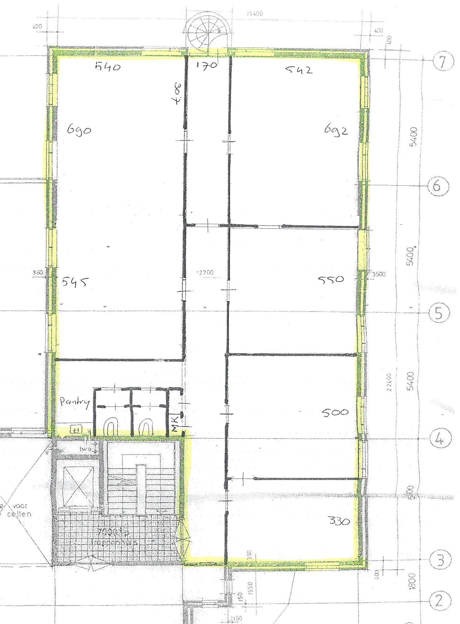Indeling: Centrale entree, lift en trappartij naar de verdieping, hal, toegang tot het kantoorgedeelte bestaande uit entree/hal, 5 kantoorruimten van diverse afmeting en een eigen pantry/toiletgelegenheid.