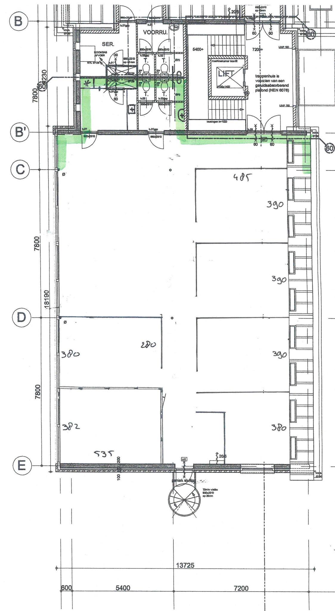 Te huur is een geheel zelfstandige kantoorruimte van in totaal 237 m2 bestaande uit een open ruimte met 4 afgeschermde werkplekken, separate werk/spreekkamer, een pantry en een toiletruimte met dames en heren toilet. Er zijn veel ramen voor daglicht toetreding aanwezig.