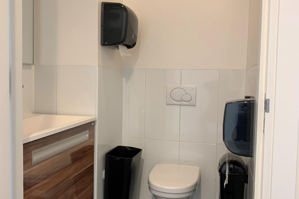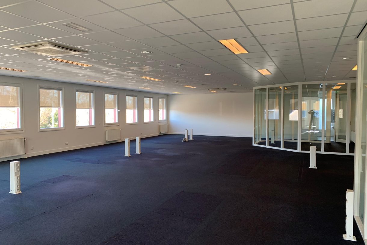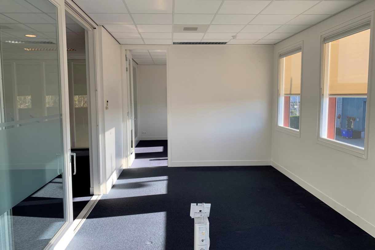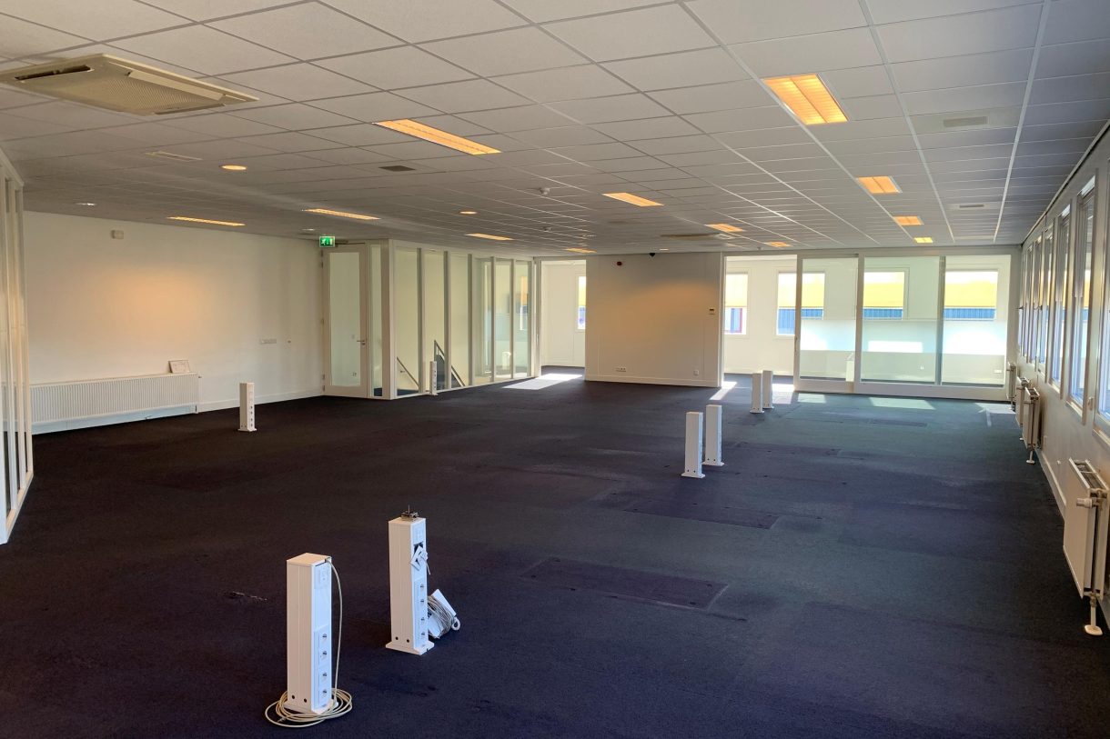 In de Centrale entree op de begane grond bevind zich een werkkast en 2 separate toiletten. Via de trap bereikt u de verdieping met grote kantoorruimte van 194 m2 met 2 naastgelegen separate kantoorruimten en een achtergelegen pantry-ruimte met toegang tot een dakterras.
