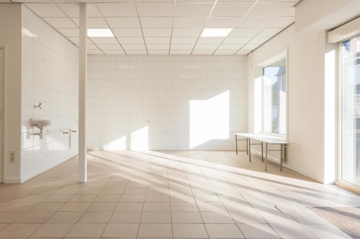 De openbare ruimte heeft een bedrijfsvloeroppervlak van 212 m² en is toegankelijk middels een elektronische vierdelige aluminium schuifpui met dubbele beglazing.