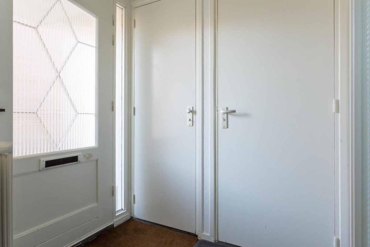 Vanuit de openbare ruimte is er een toegangsdeur naar het afgesloten gangpad waar de gemeentelijke afvalcontainers voor huishoudelijk,- papier- en plasticafval gestald kunnen worden.