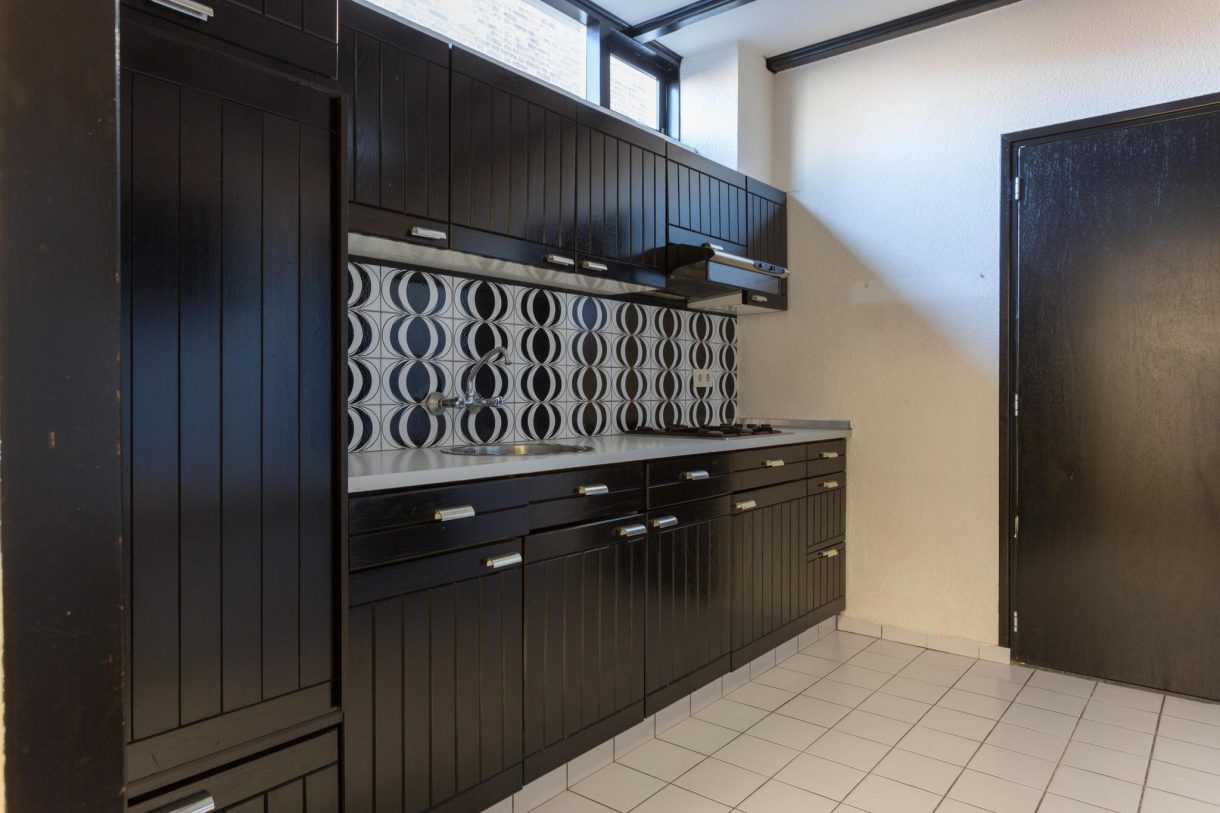 De privéruimte heeft een vloeroppervlak van 23 m² en is toegankelijk middels een aparte voordeur uitkomend in de hal met toegangsdeuren naar de meterkast, het toilet met fonteintje en naar de keuken. De keuken heeft een wandkeukenblok met koelkast, rvs spoelbak met koud- en warmwatervoorzieningen, afzuigkap en een 4-pits gaskookplaat, een design keukentafel in de kleur wit Ral 9010 met daarboven tegen de muur bevestigd twee extra keukenkastjes. Vanuit de keuken zijn er toegangsdeuren naar de openbare ruimte en naar de bijkeuken.