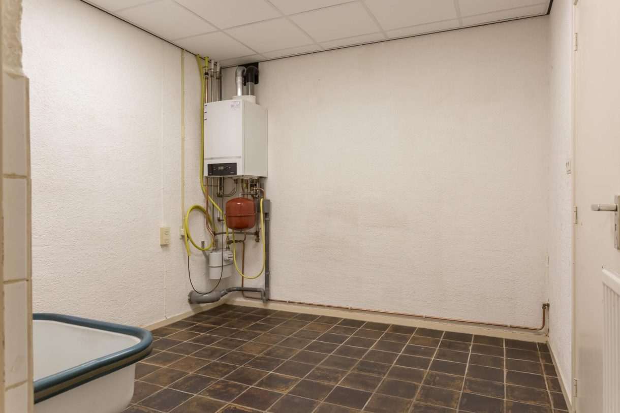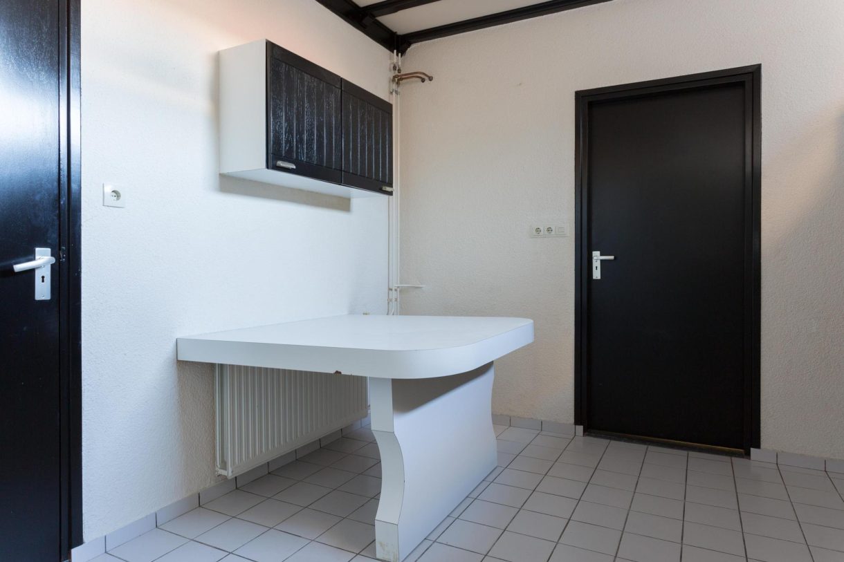 In de bijkeuken, in september 2017 eveneens voorzien van een nieuw systeemplafond met ledverlichting, bevinden zich een wit emaillen spoelbak met koud- en warmwatervoorzieningen, een afvoeraansluiting voor vaatwasser en/of wasmachine, een eigen c.v.-ketel met tussenmeter en een toegangsdeur naar de openbare ruimte.