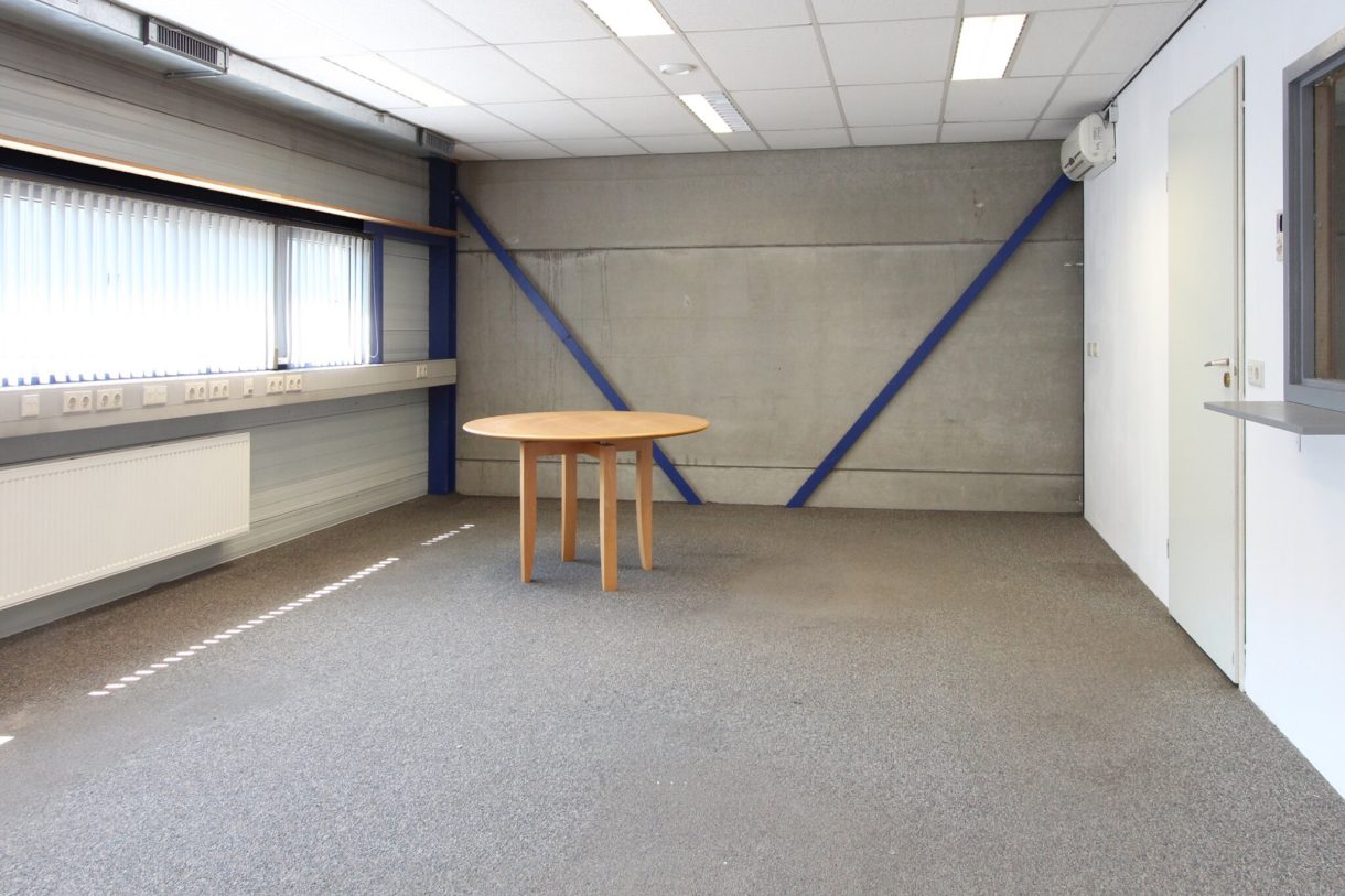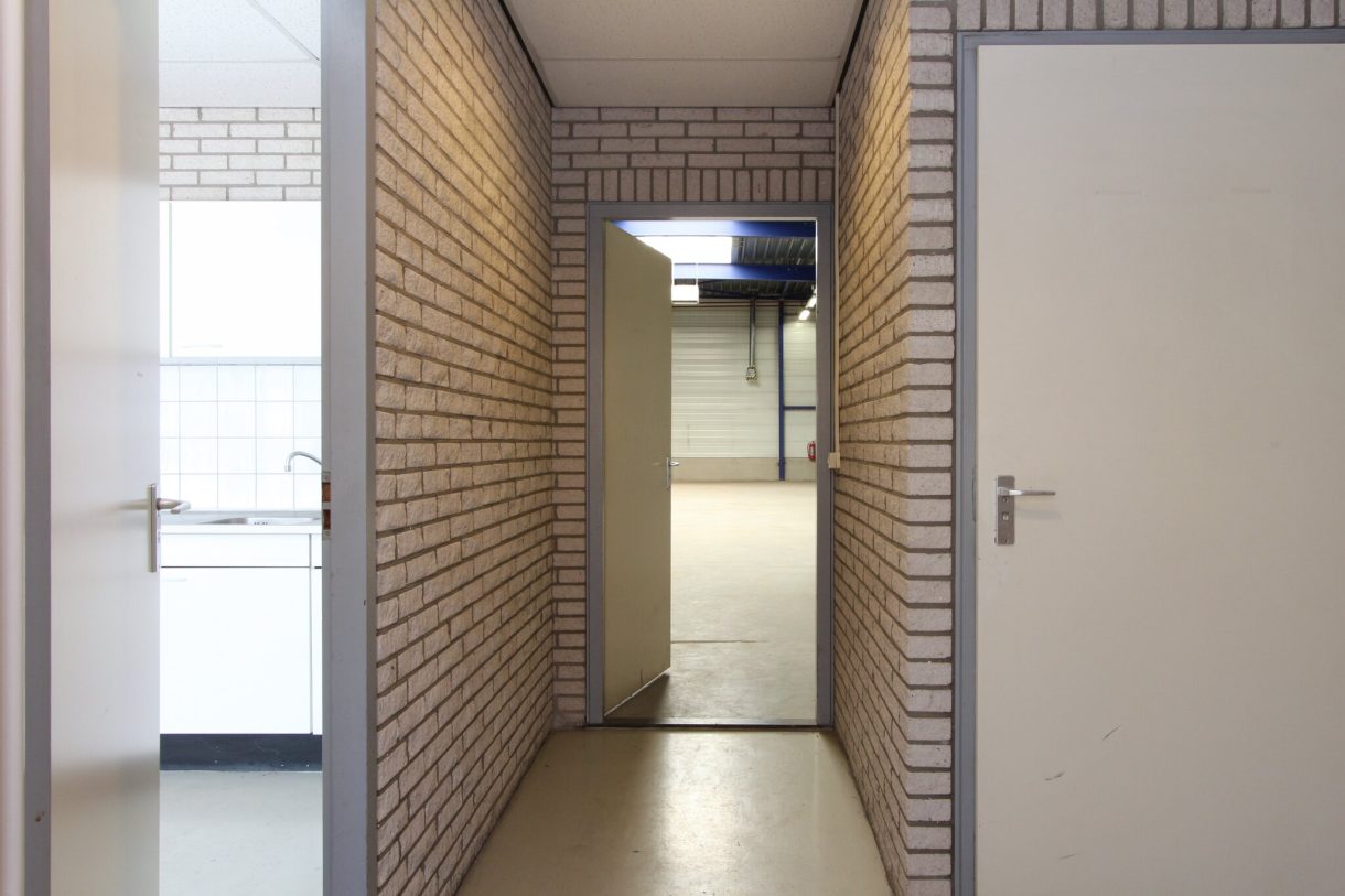 Zelfstandige bedrijfsruimte met overheaddeur en geheel vrije overspanning. Inclusief kantoor, verdeeld over twee bouwlagen en voorzien van toilet en keukenblokje. Voldoende parkeerruimte voor het gebouw alsmede voldoende ruimte om te laden/lossen.