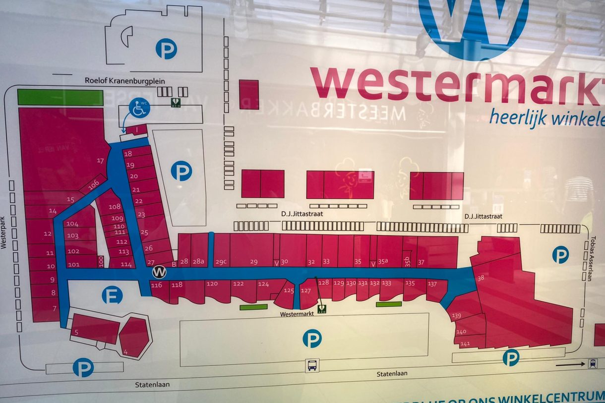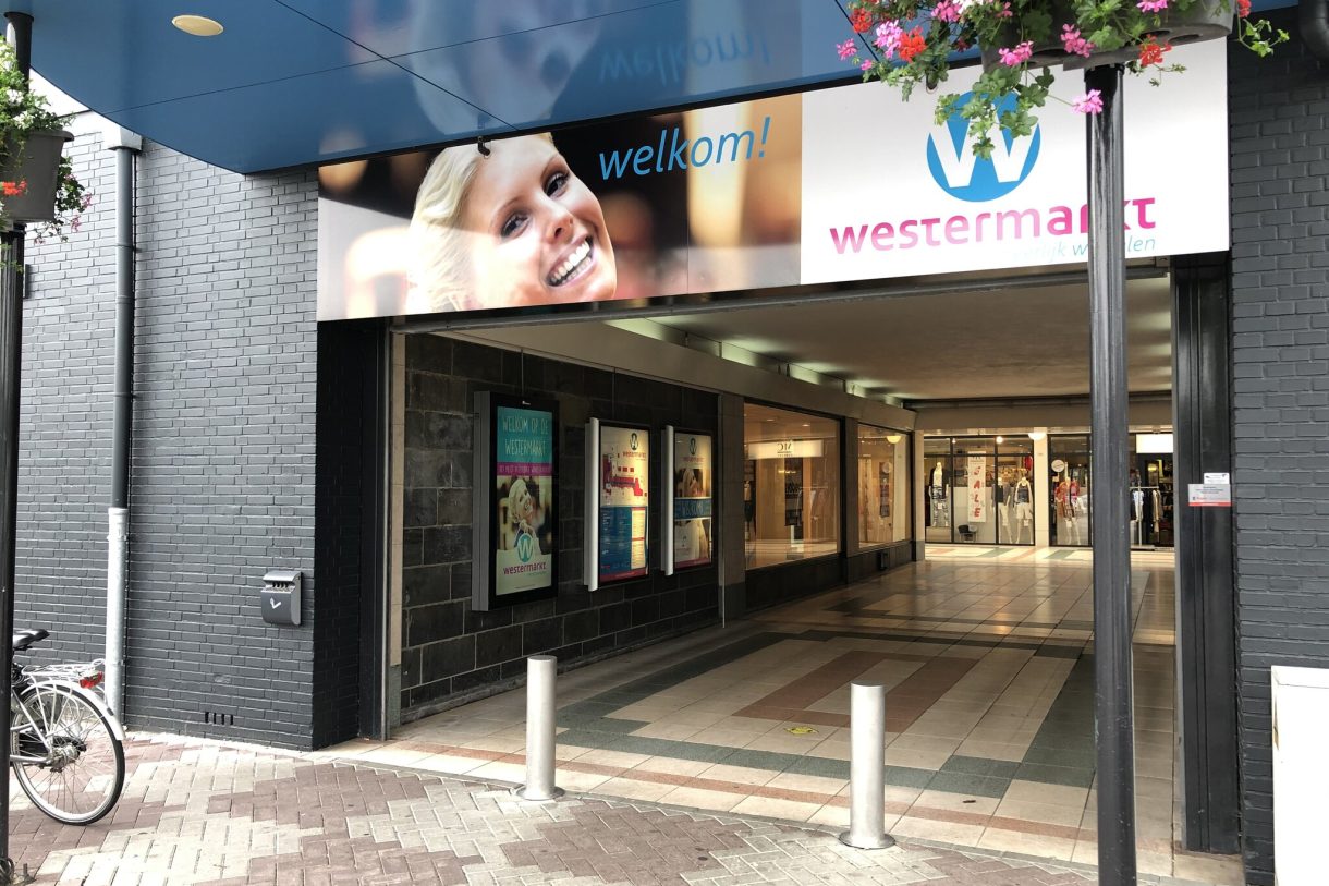 Nabij ingang gelegen hoeklocatie in stadsdeelcentrum “WC Westermarkt”