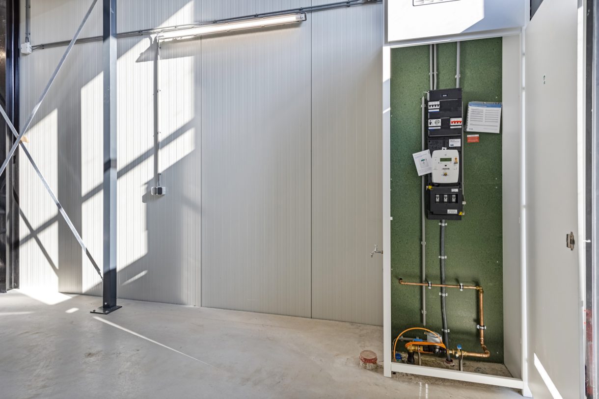 – Meterkast met elektra- en wateraansluiting