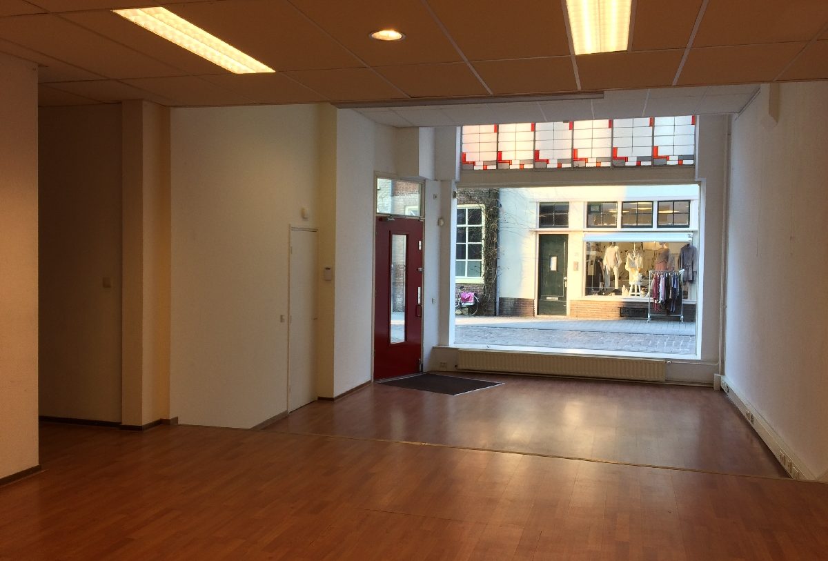 Te huur in het historische centrum van Zutphen een mooie royale winkel- of praktijkruimte, of dienstverlenend bedrijf, dichtbij de markt en bij de IJssel.