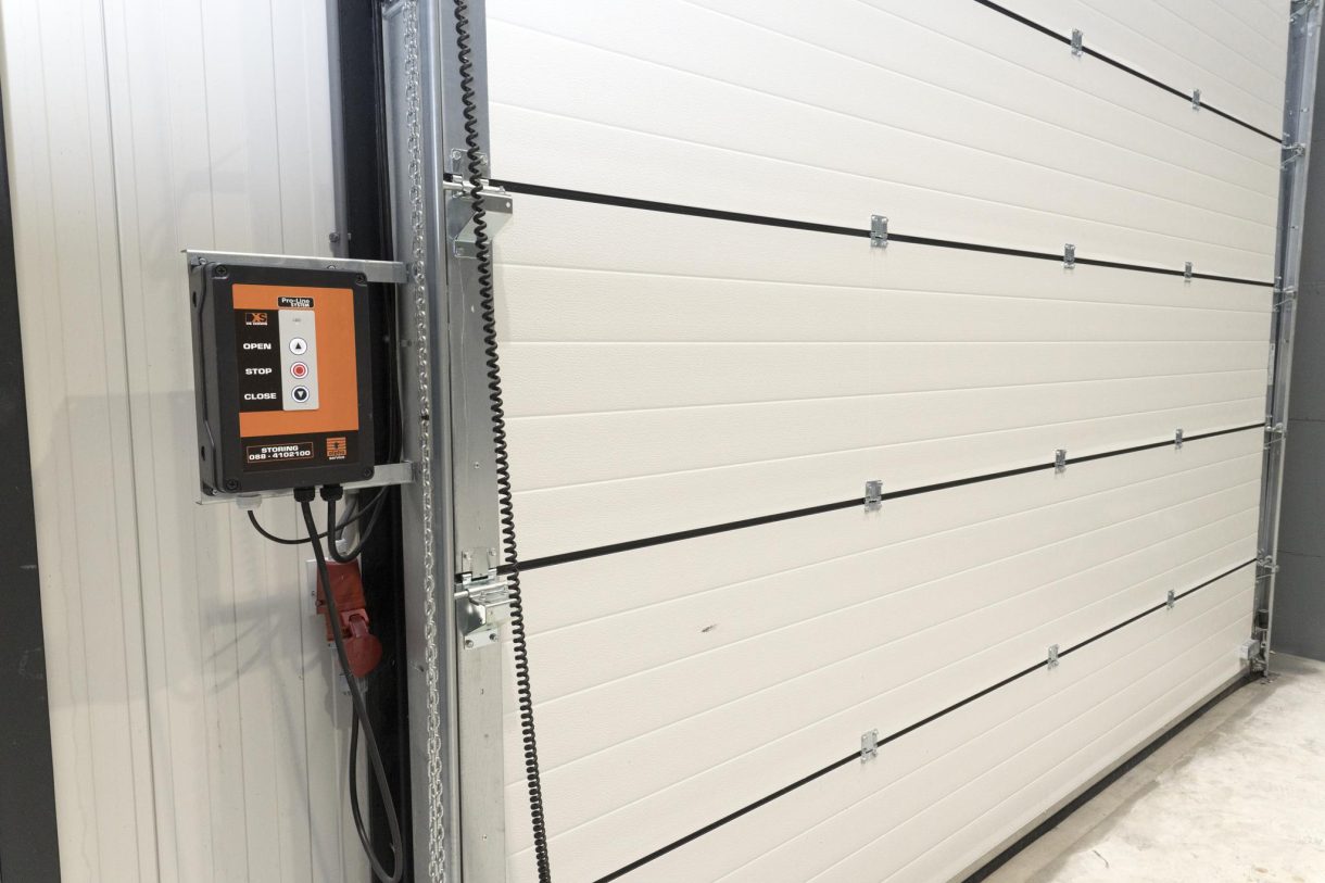 elektrische roldeur, afmeting 400 cm breed en 330 cm hoog.