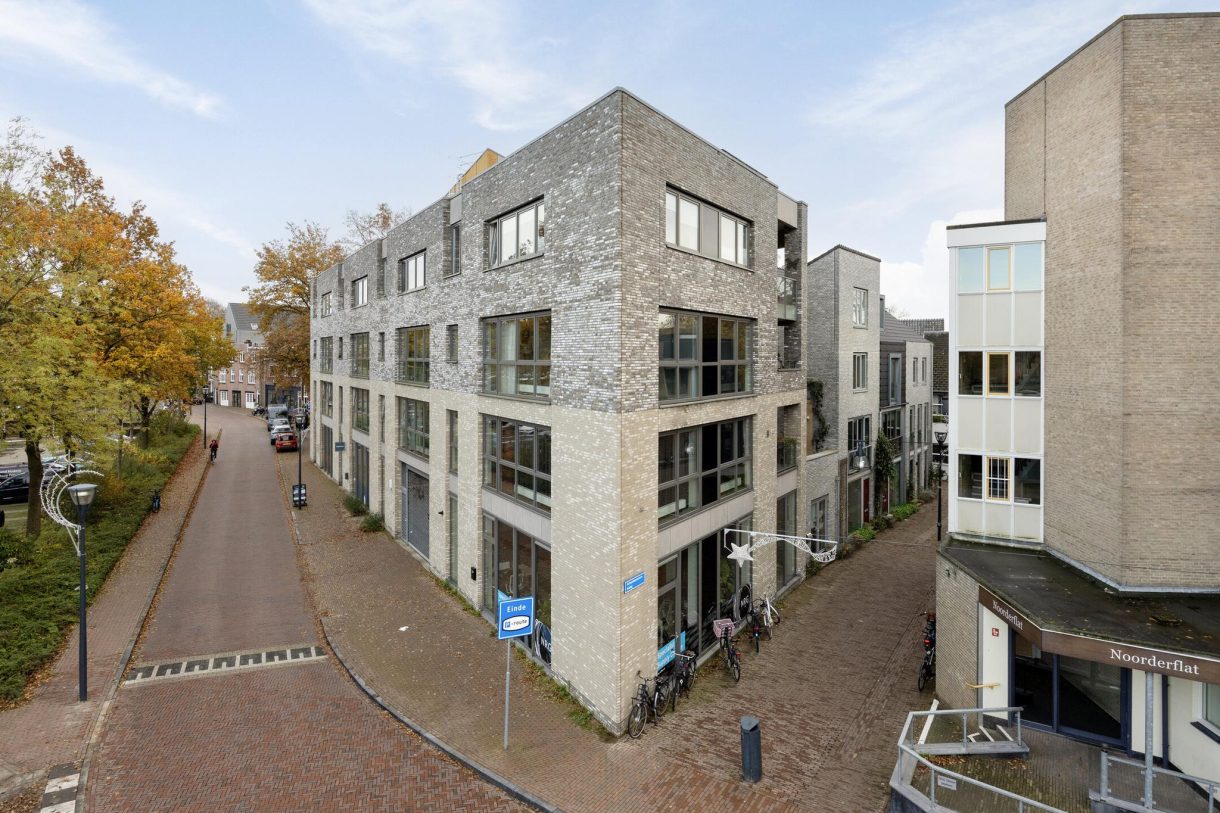 De ruimte is onderdeel van een onder architectuur gebouwd kleinschalig appartementencomplex met een viertal winkels/bedrijfsruimten in de plint,