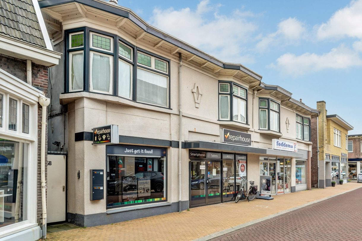 De bovenwoning (woonoppervlak circa 150 m²) is tevens te koop, de koopprijs voor deze ideale winkel-/atelier-/praktijkruimte met ruime bovenwoning is € 475.000,- k.k.
