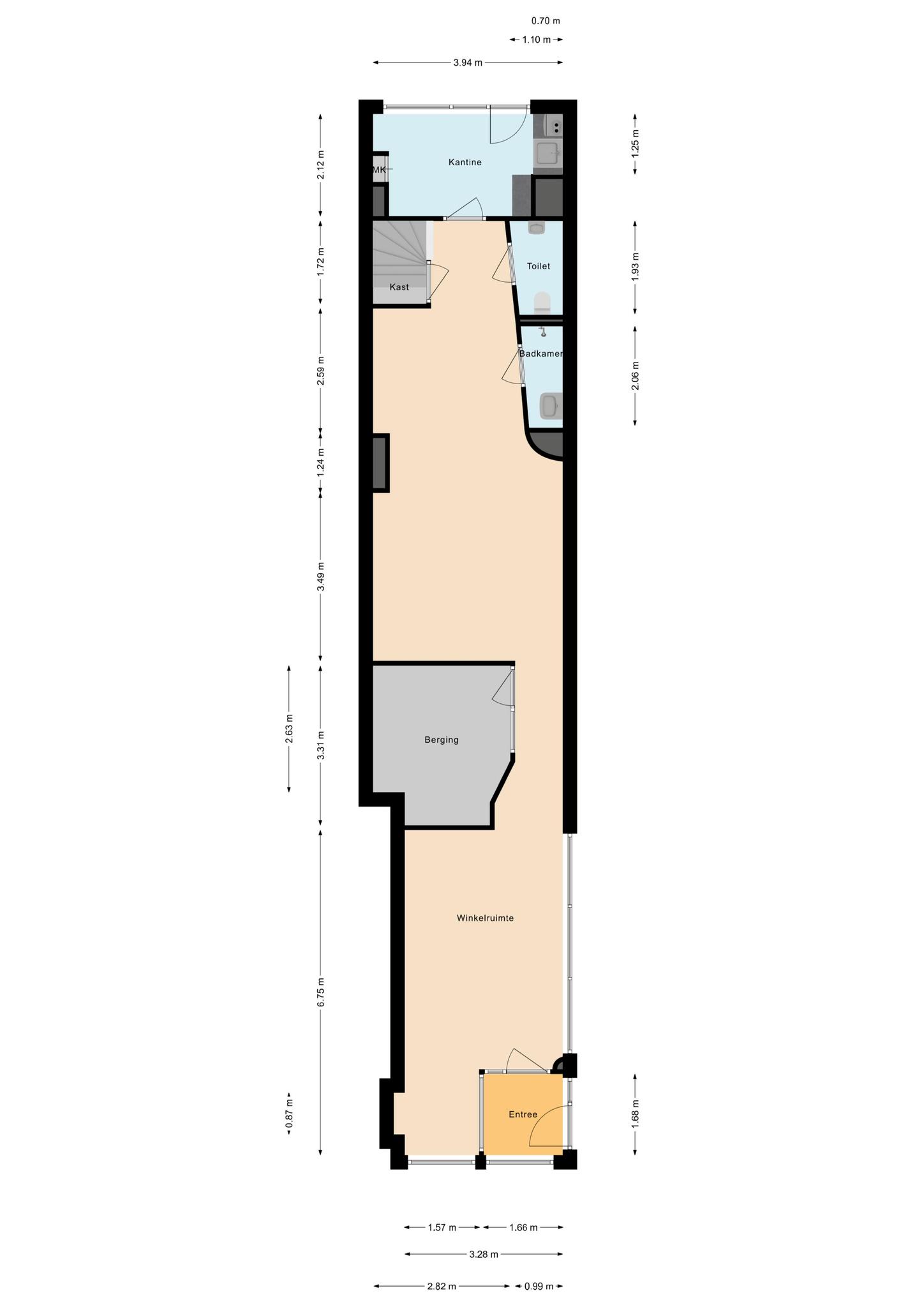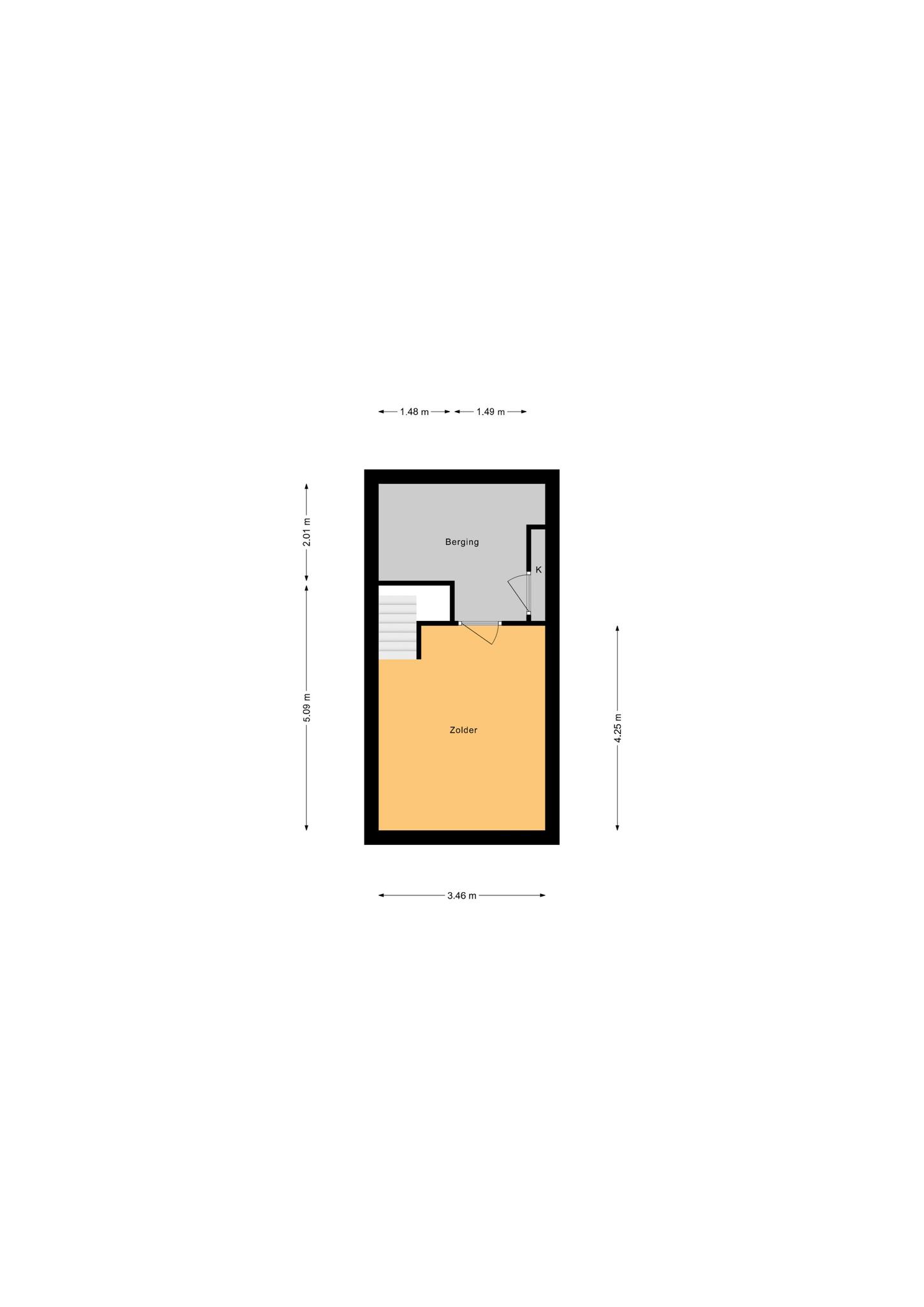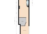 Indeling: entree, vestibule, kamer, berging, achterkamer, toilet, douche en wastafel, gesloten keuken met achterentree, pantry, opstelling c.v.-ketel en meterkast.